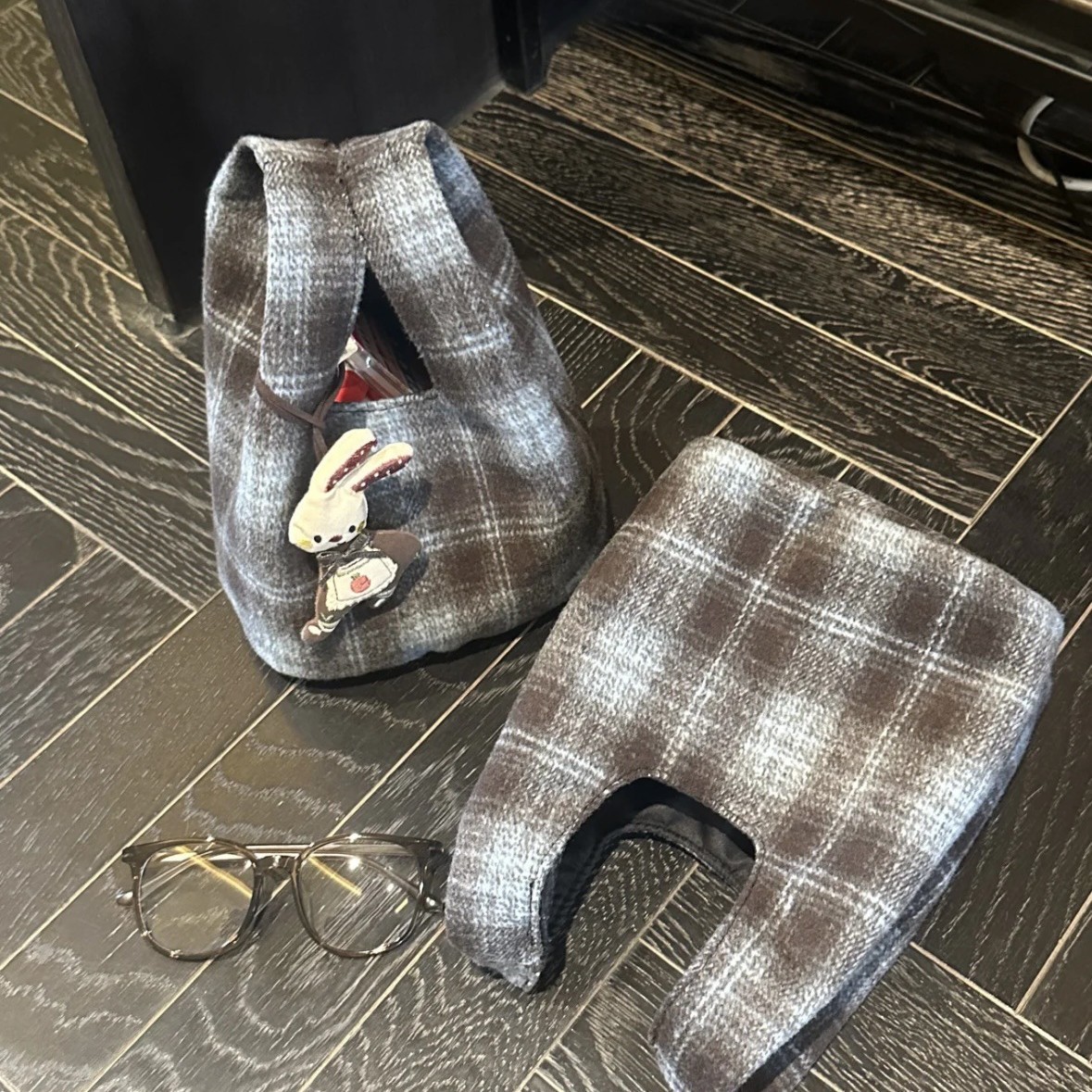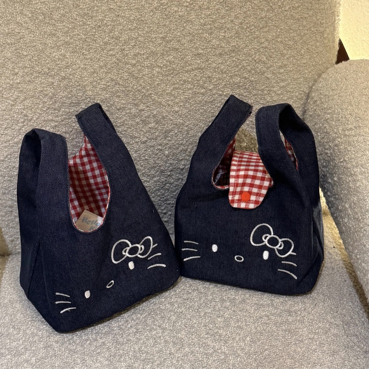 2025新型かわいいカウボーイkitty刺繍バッグ携帯格子縞衝突色の小さい方バッグ外出収納バッグ