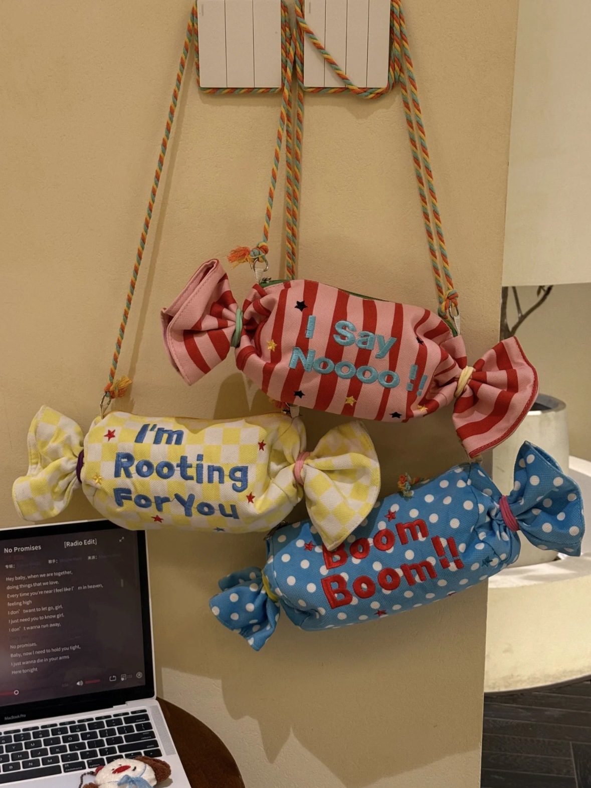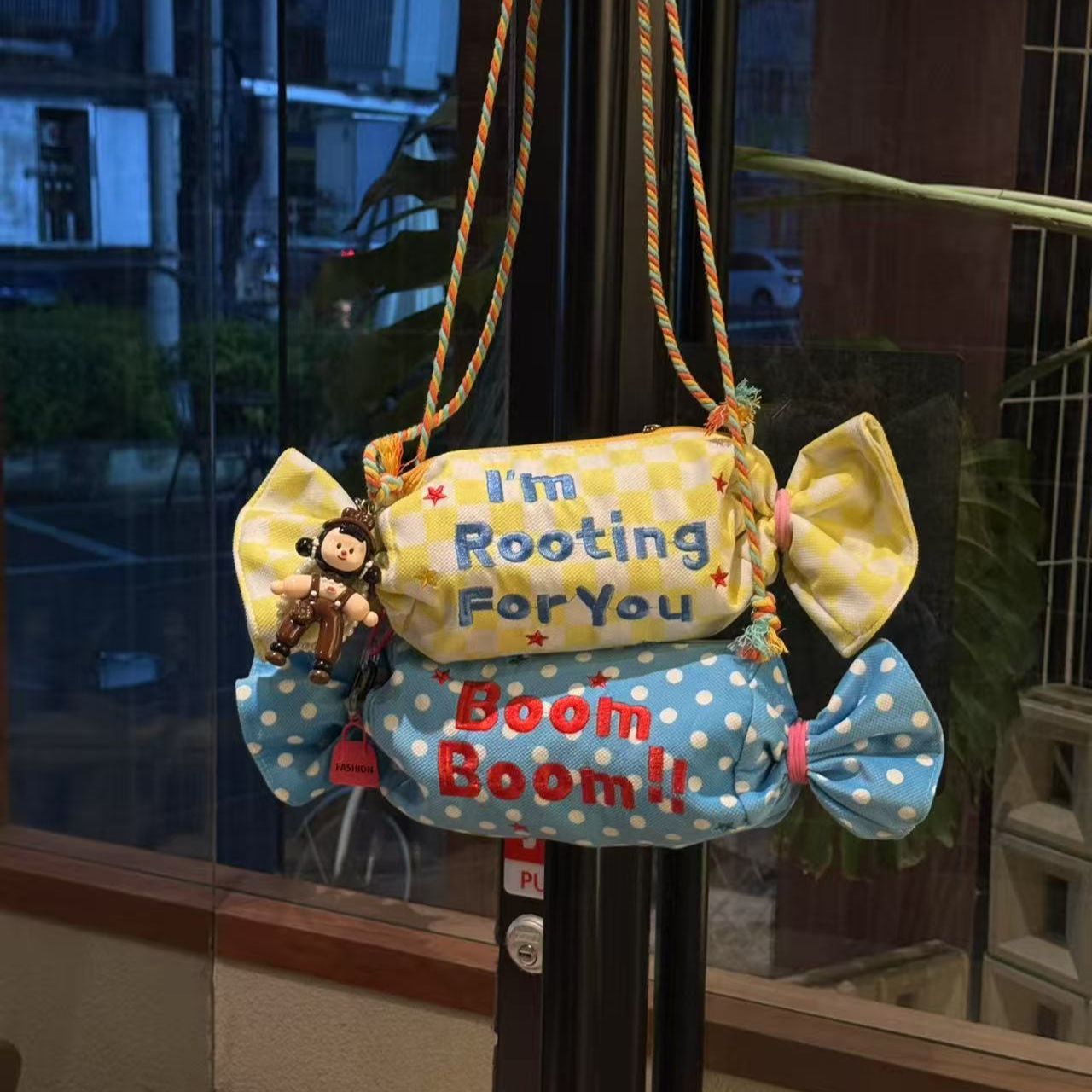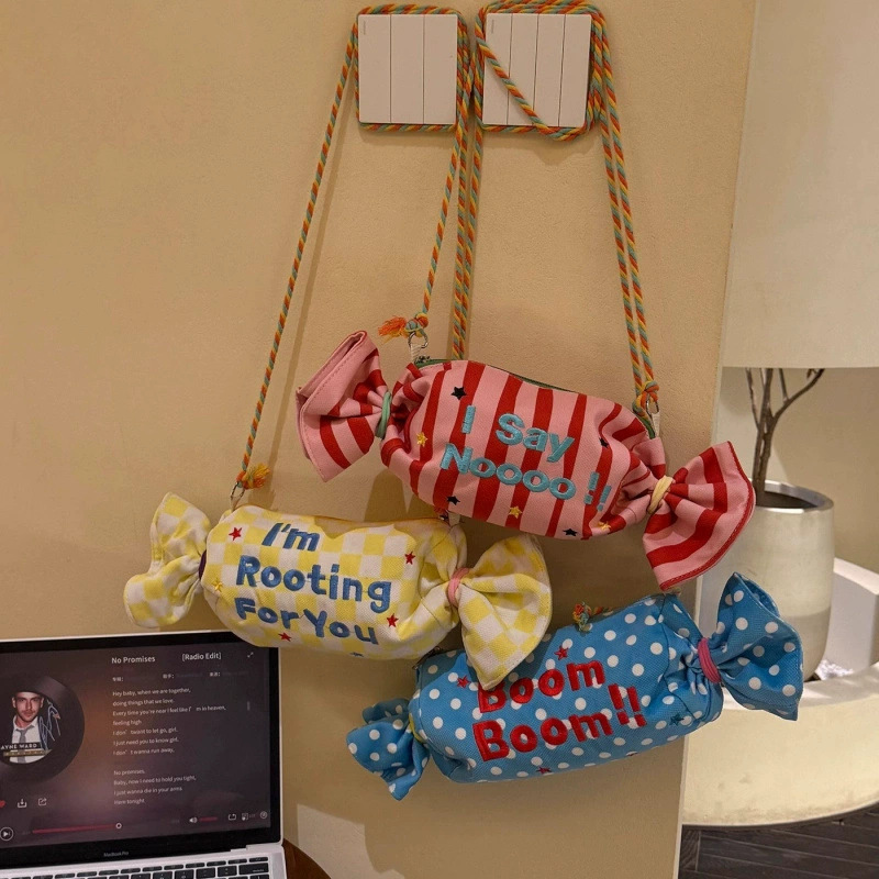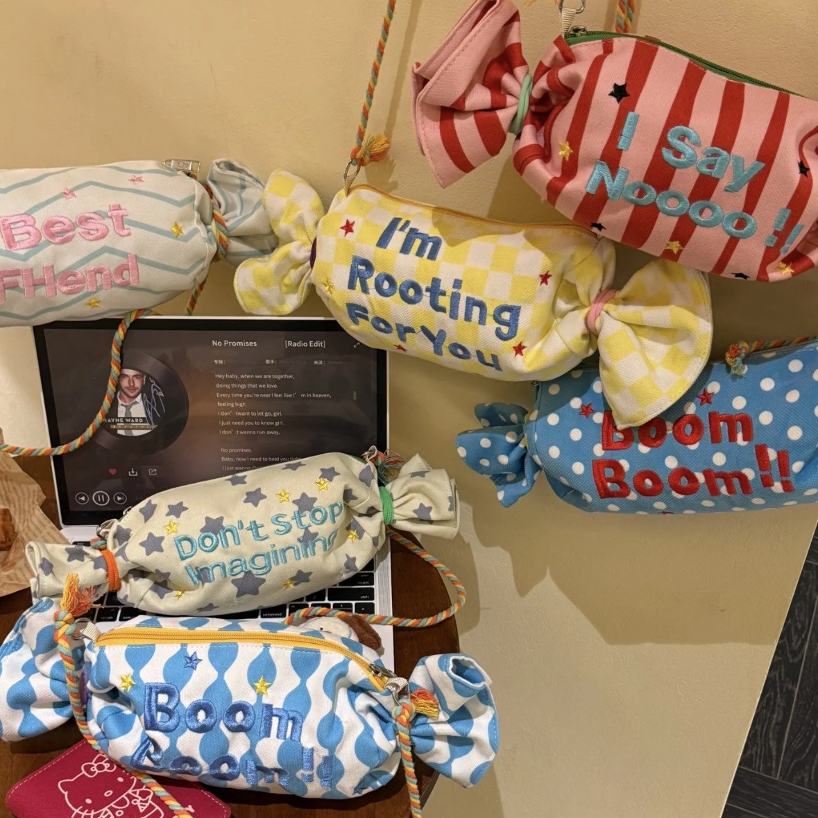 帆布斜挎包新款时尚大容量创意糖果可爱单肩包日常百搭刺绣通勤包