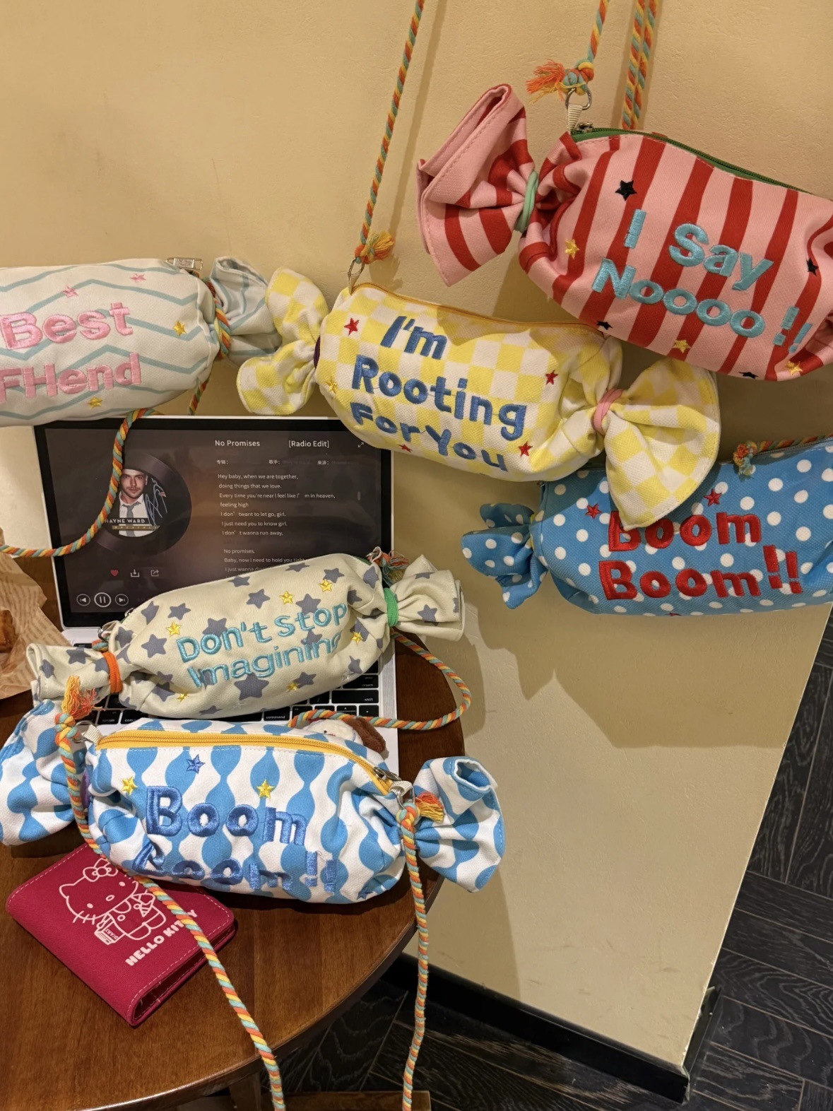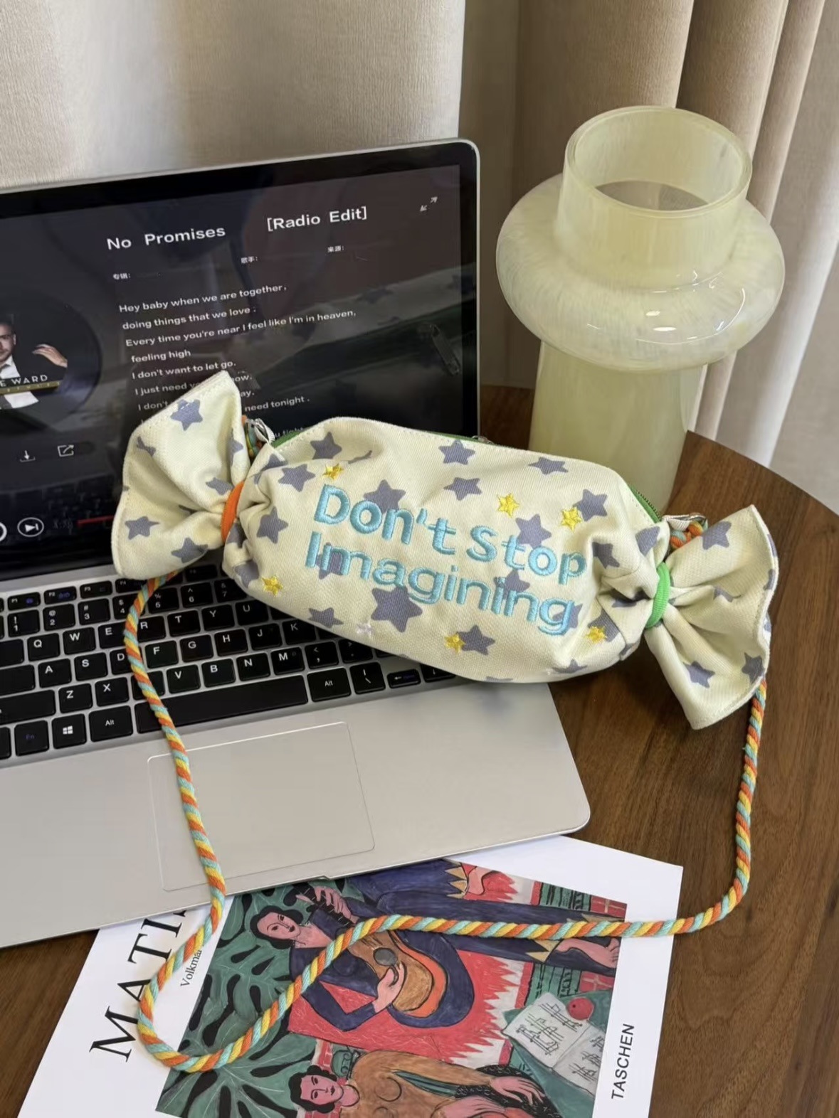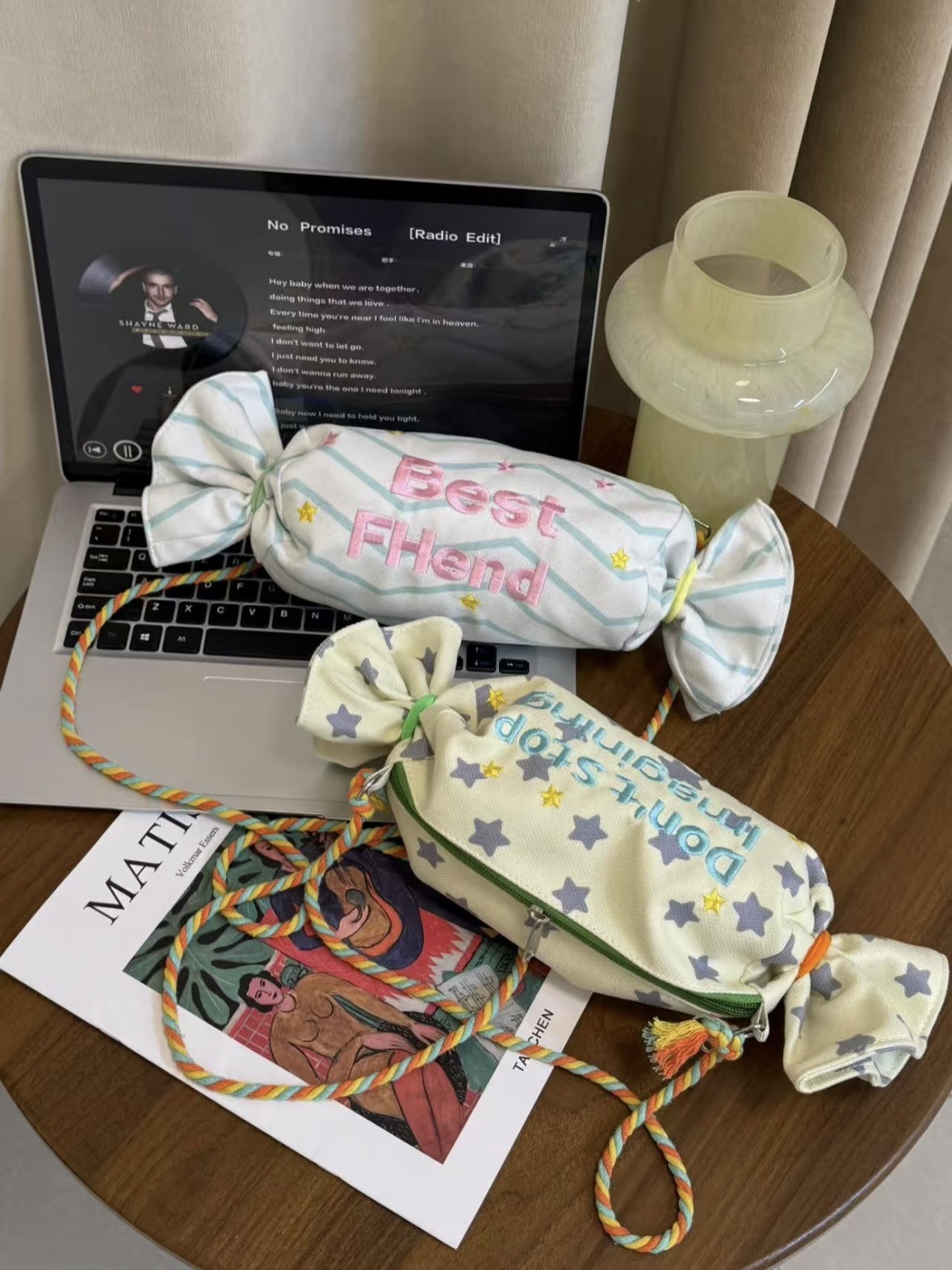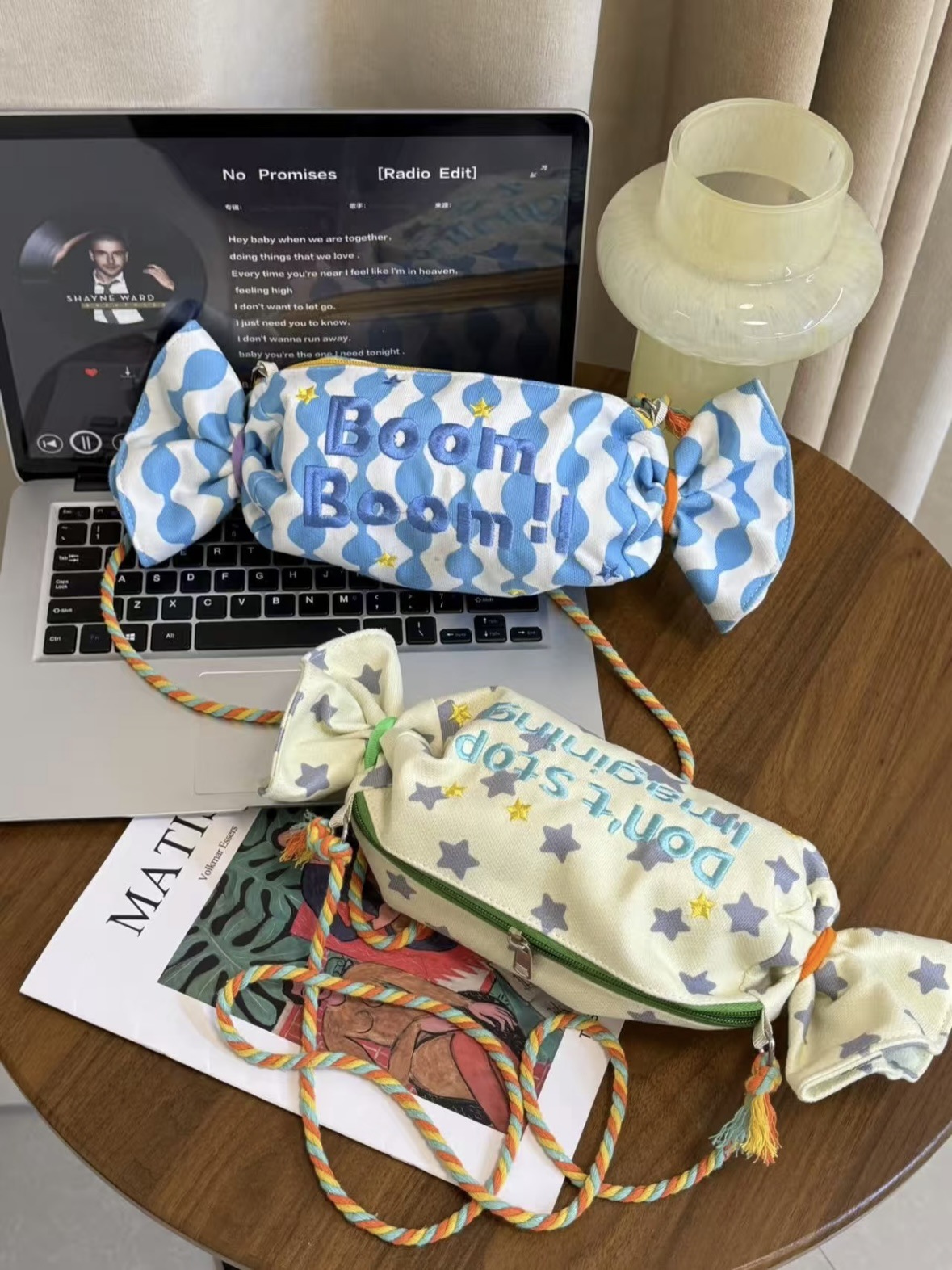 帆布斜挎包新款时尚大容量创意糖果可爱单肩包日常百搭刺绣通勤包