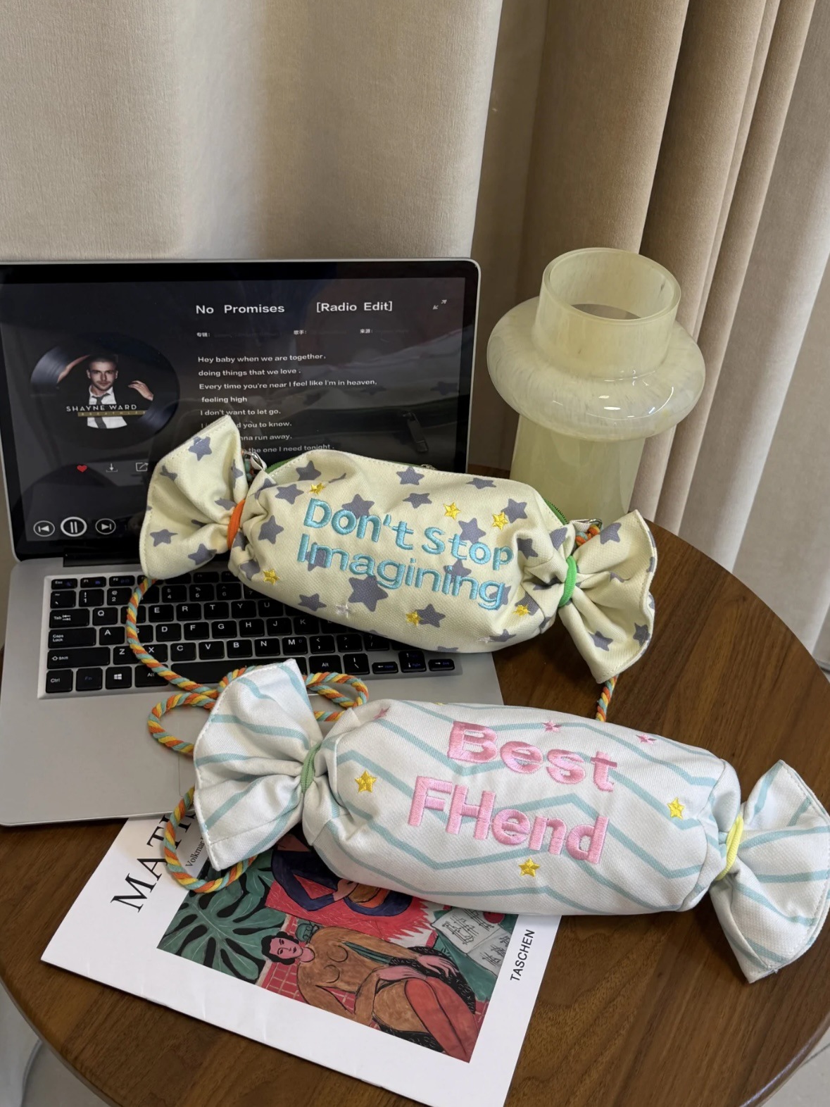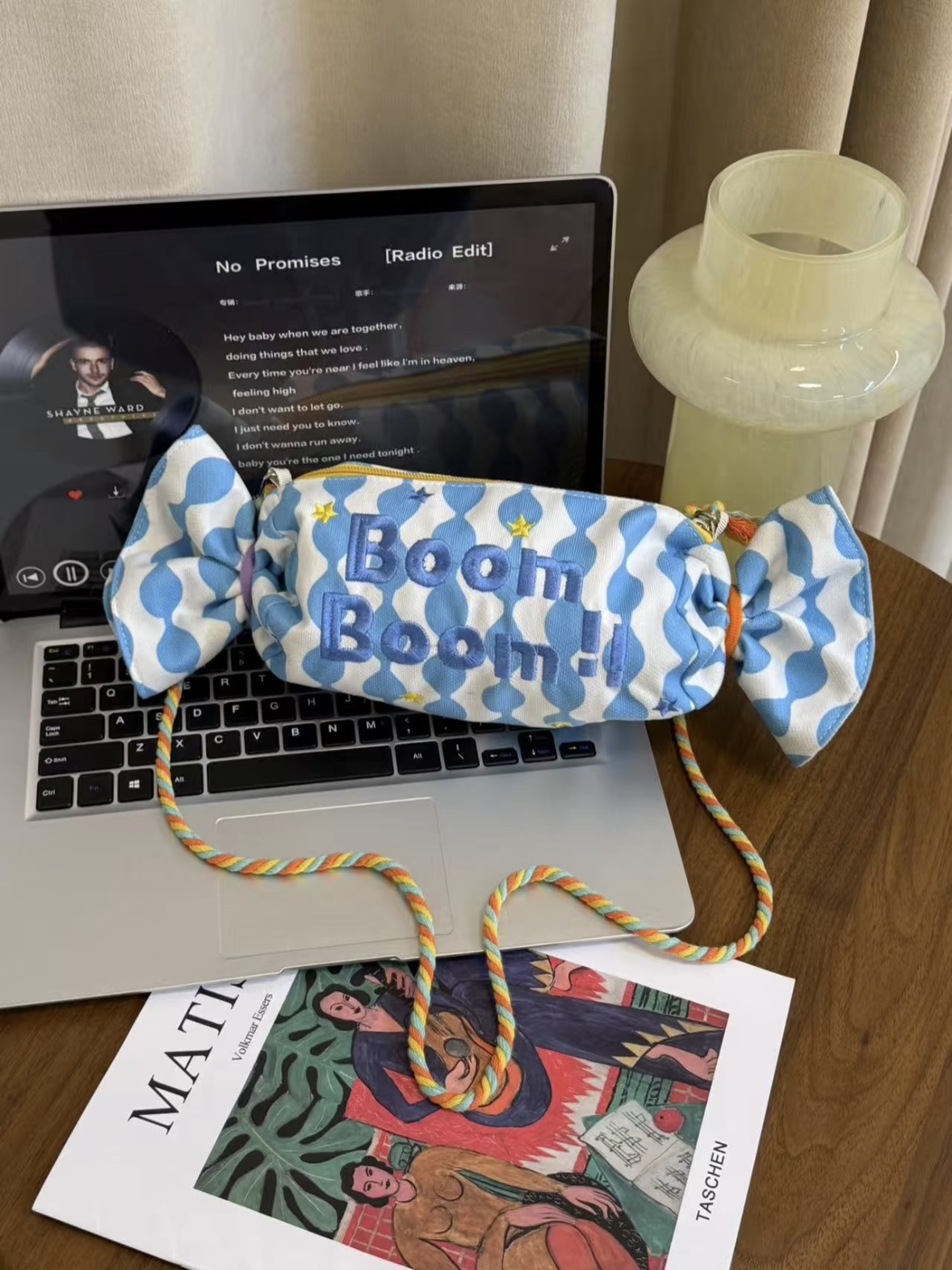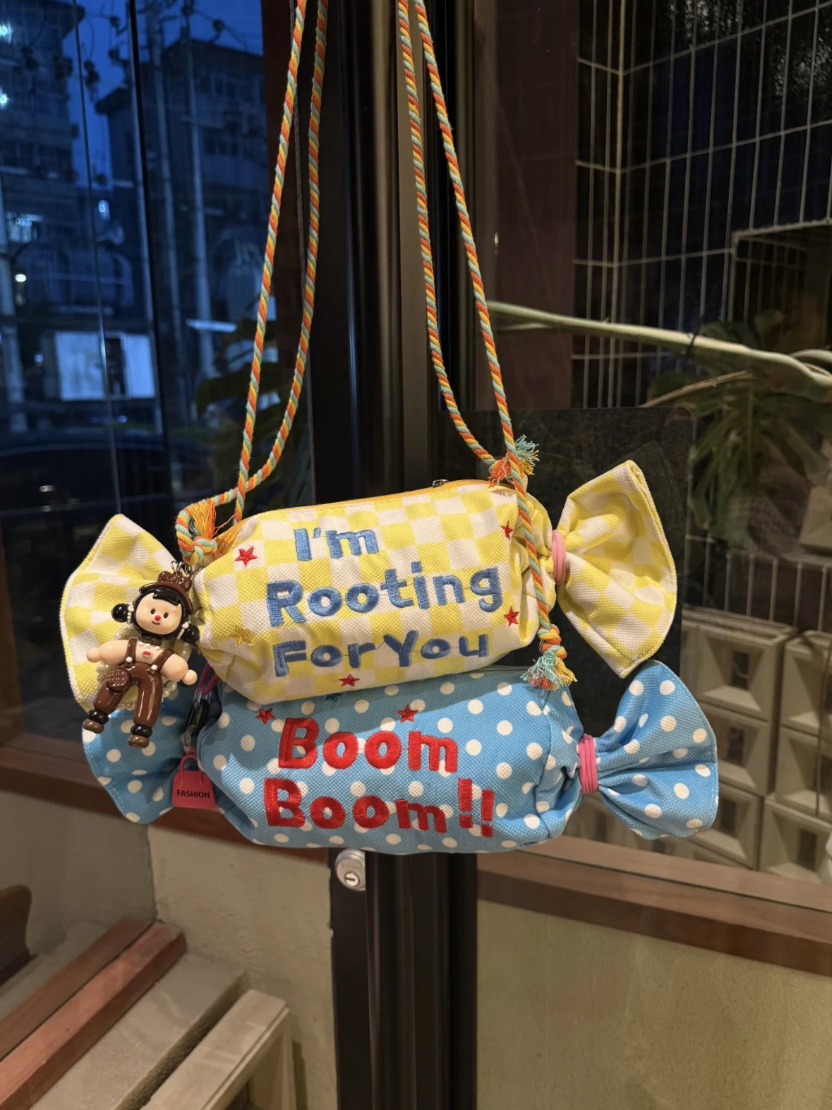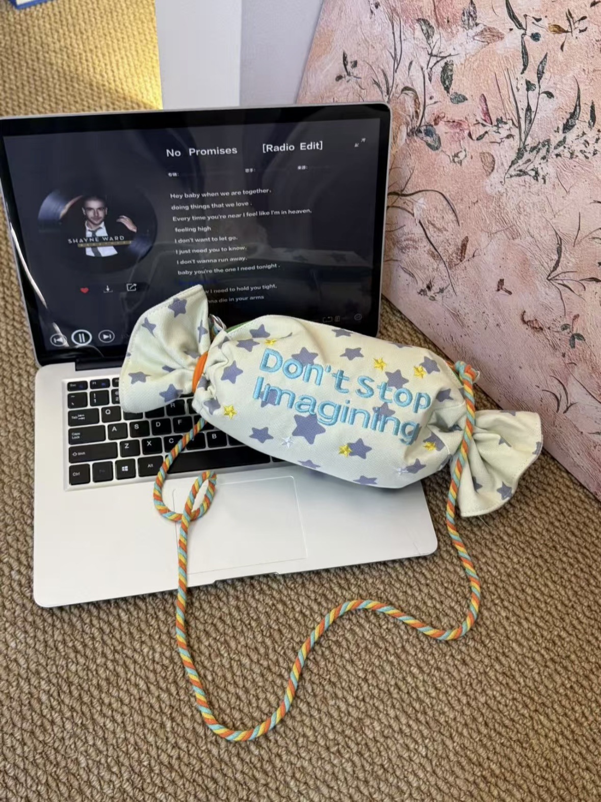 帆布斜挎包新款时尚大容量创意糖果可爱单肩包日常百搭刺绣通勤包