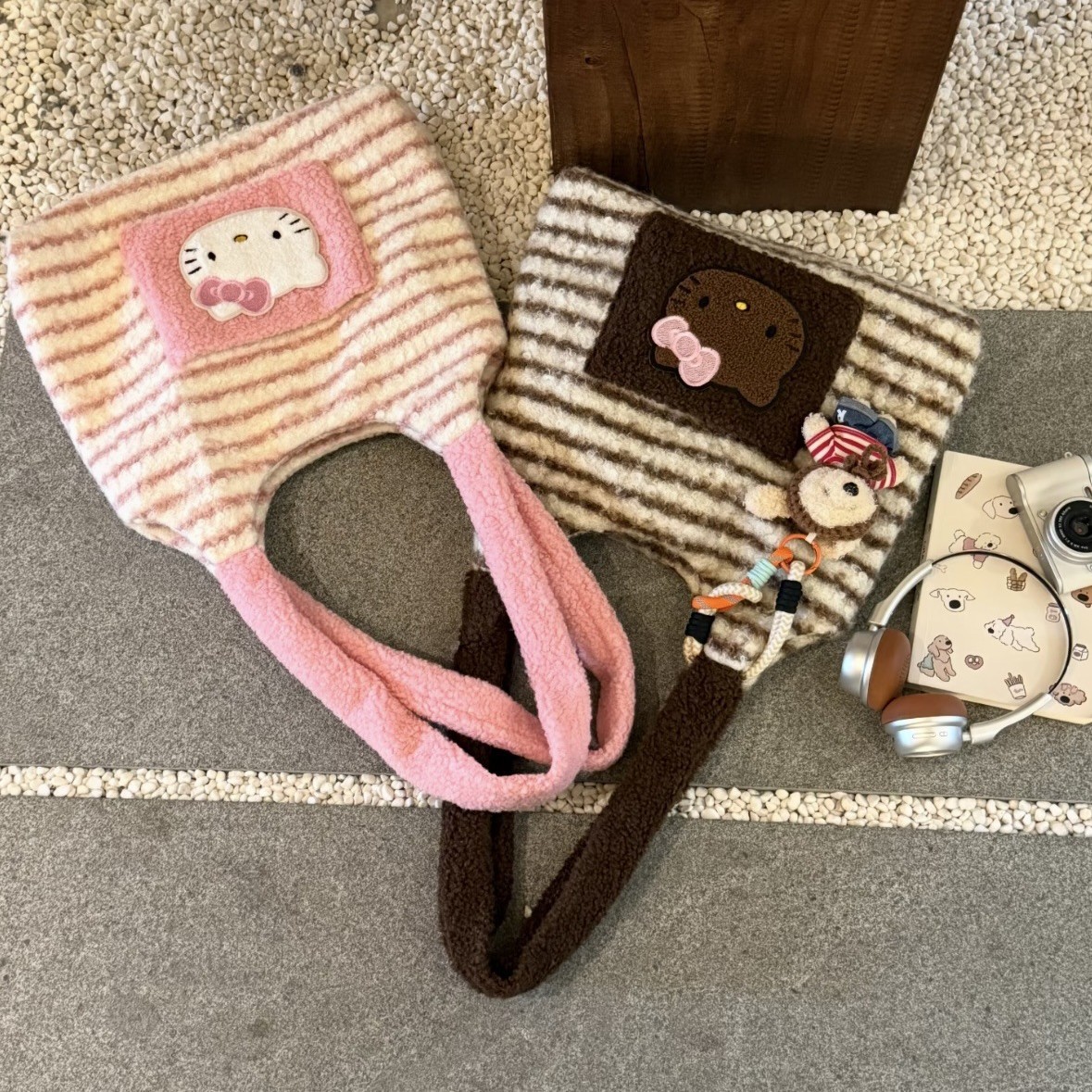 かわいいキティぬいぐるみショルダーバッグ2025秋冬新作大容量脇の下バッグふわふわ通勤ハンドバッグ