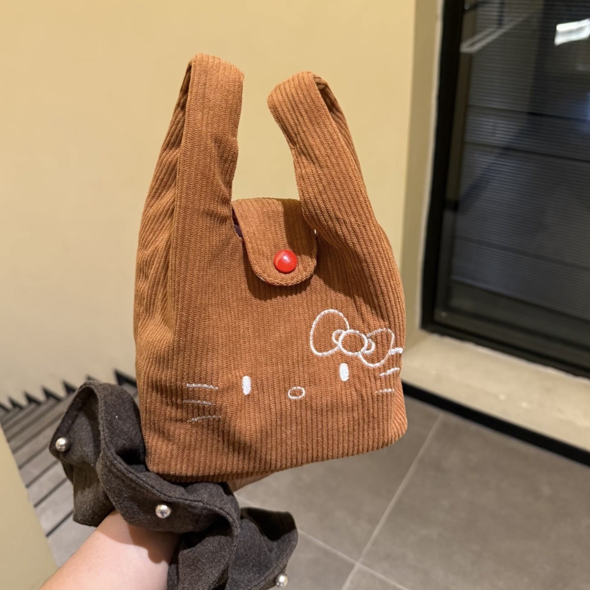 オリジナル新作秋冬小物入れリストバッグ~超韓国風コーデュロイ素材 可愛いキティ刺繍ハンドバッグ