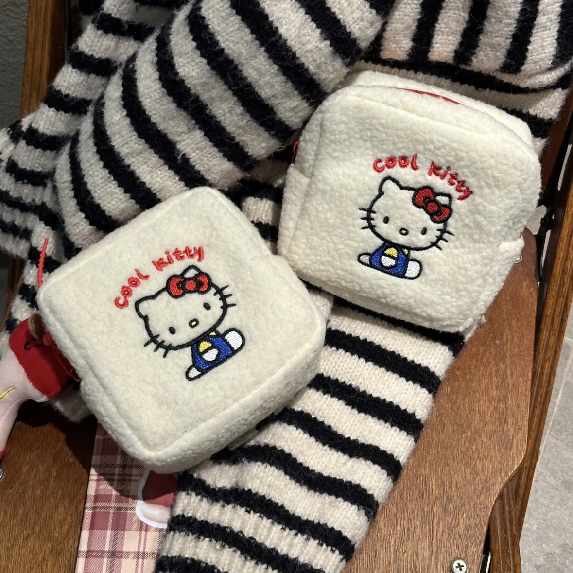 秋冬新作^ふわふわ羊毛刺繍漫画風コスメ収納バッグ可愛いキティ携帯用小型スクエアバッグ