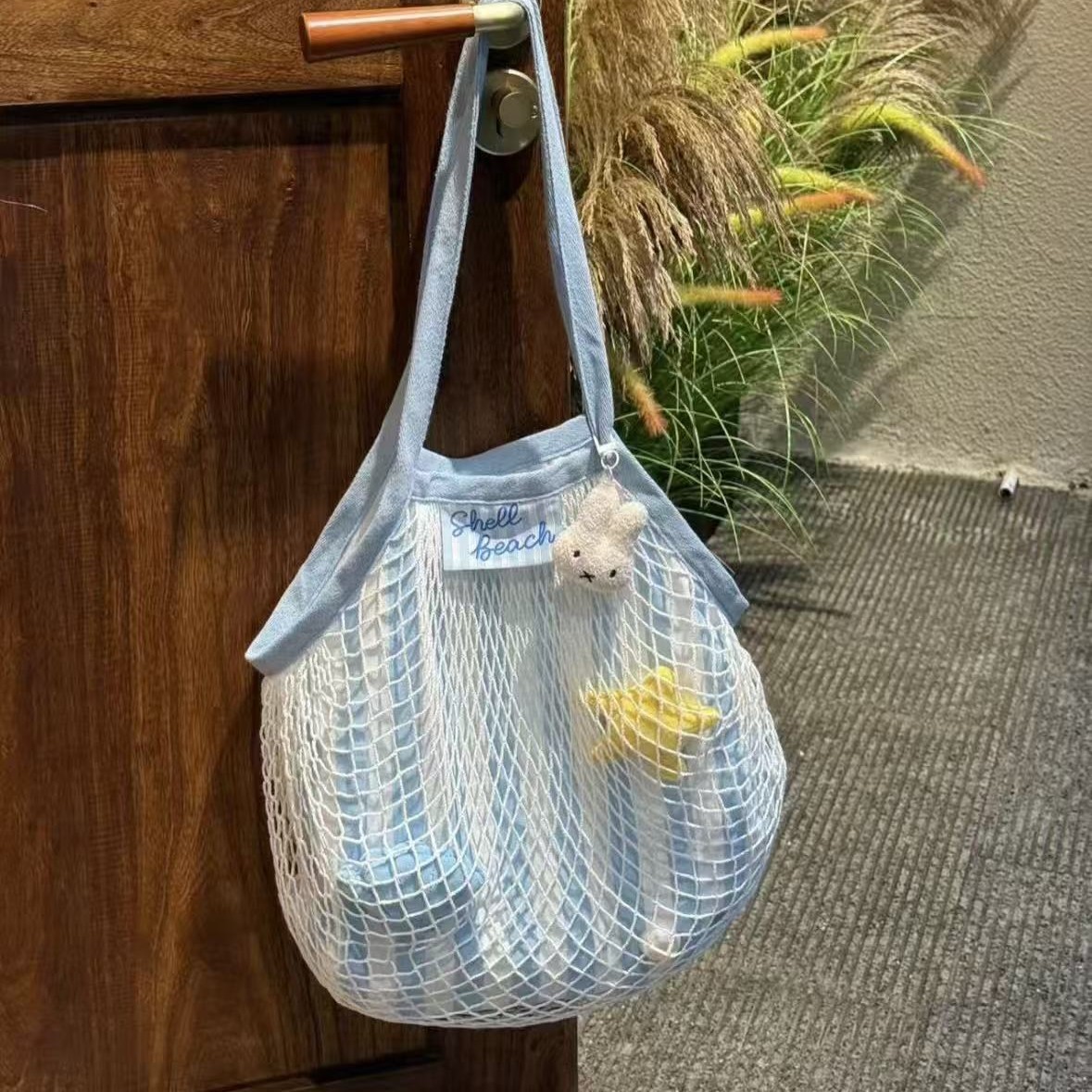 爽やかなブルーネットシェルビーチネットバッグ ショルダーバッグ キュートな彼女へのプレゼント 旅行用大容量バッグ