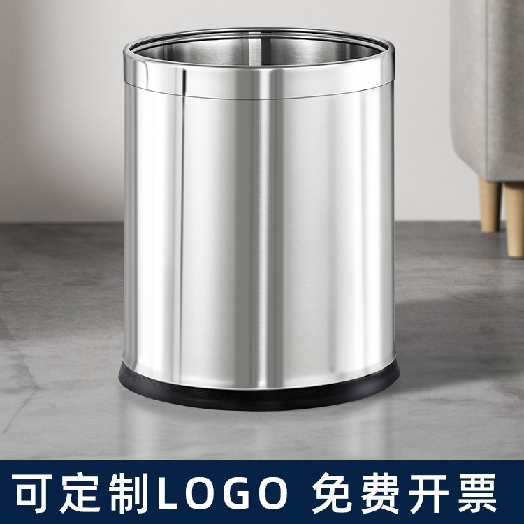 商用ステンレスゴミ箱家庭用ホテルオフィスキッチントイレ客室二重蓋なしロゴ