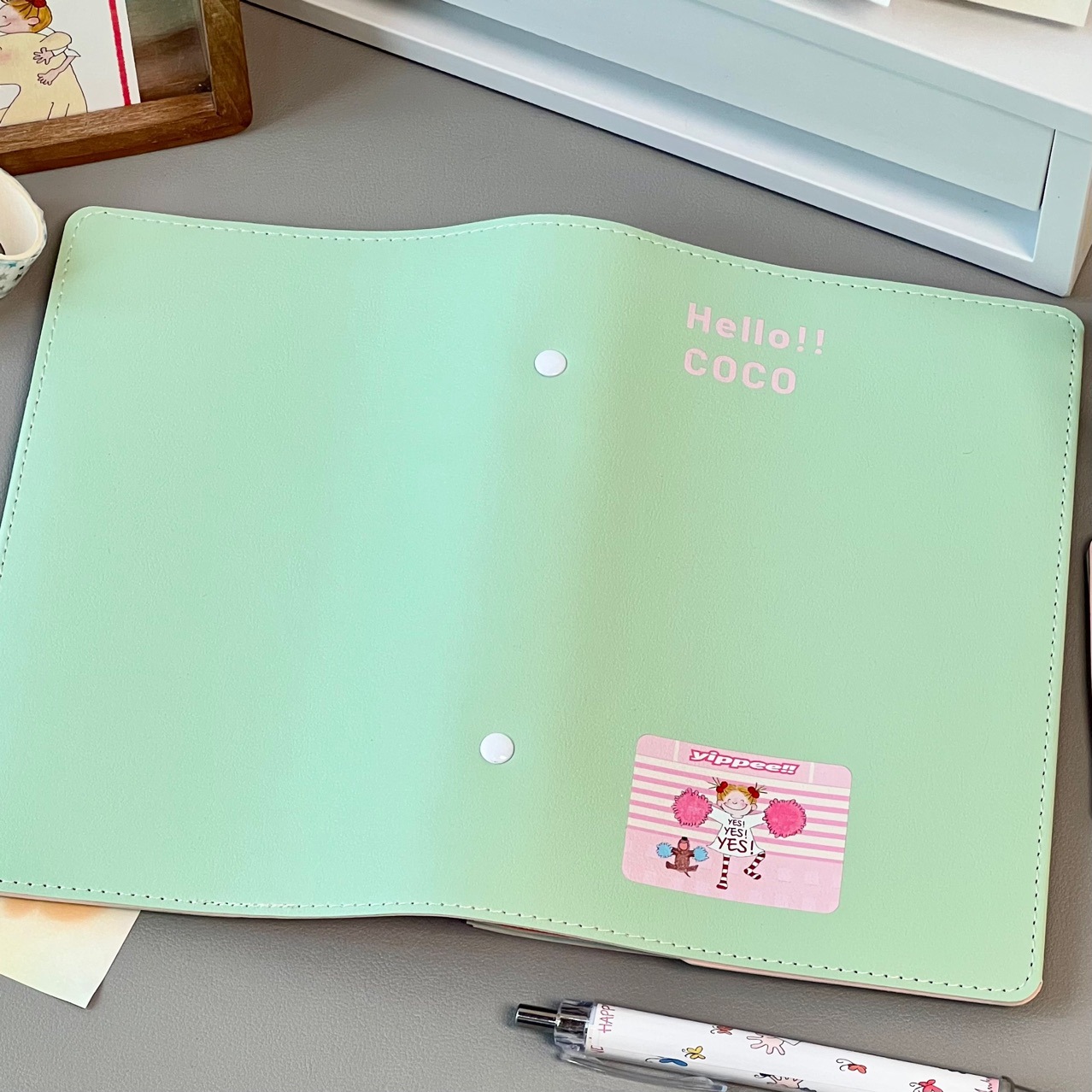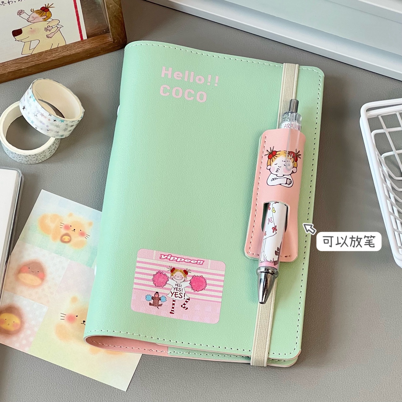 ココソースノートPUレザーA6ルーズリーフカバー学生用グリーン日記帳高颜值カラーページ手帳