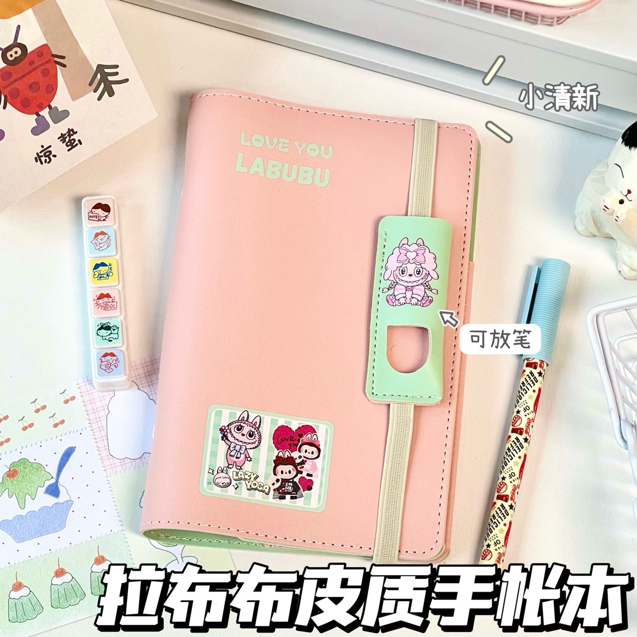 LABUBU 取り外し可能なレザーノートブック日記ポータブルメモ帳学生用
