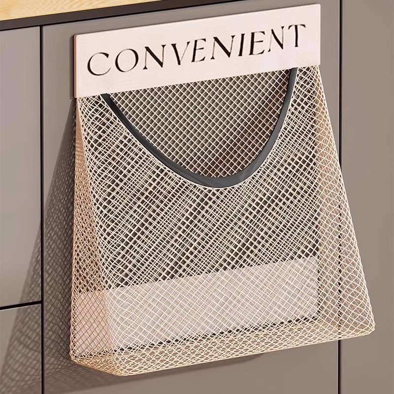 キッチンゴミ袋収納バッグマジックテープ網袋シンプル家庭用雑物網袋ゴミ袋壁掛け収納袋