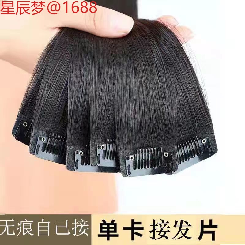 本物の髪のピース、シームレスなシングルカードヘアエクステンション、自分で簡単に付けられます、目に見えない前髪、小さなワンピースストレートヘアで髪のボリュームを増やします。