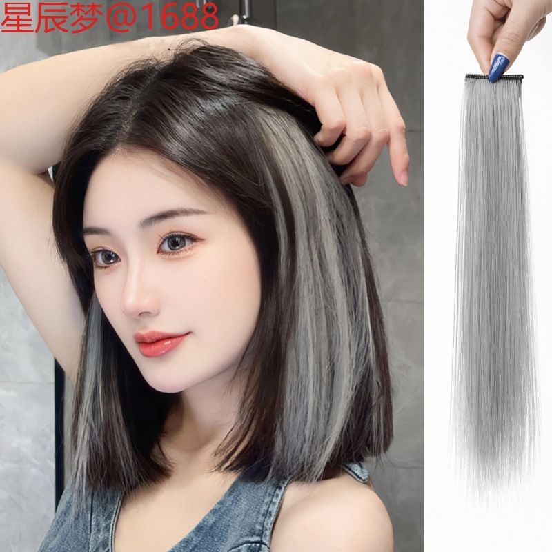 耳掛け染めカラーフェザーヘアエクステンション本物の髪第二世代シームレスヘアエクステンションロングヘアハイライトワンピーススモークグレーグラニーグレー