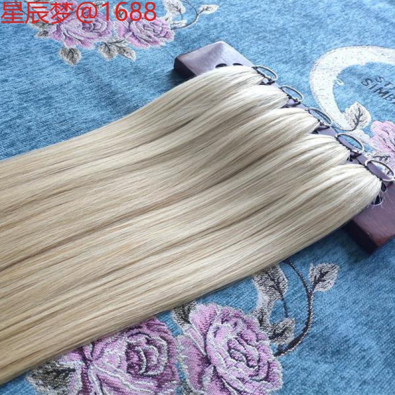 第二世代フェザー9度カラーヘアエクステンション、リアルヘアゴールドホワイトフェザーヘアエクステンション、ハイライト、シームレスヘアエクステンション、手織り直販