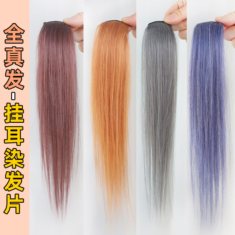 シングルクリップストレートヘアピース、人毛耳掛け染めヘアピース、グラデーションスモールピースヘアエクステンション、女性用インビジブルカラーヘアバンド