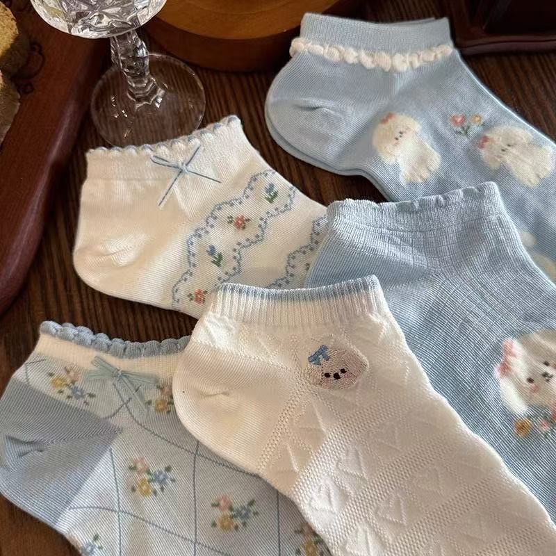 春夏の靴下かわいいショートソックス薄い漫画子犬柄ボートソックス多用途通気性浅い口の女性の靴下
