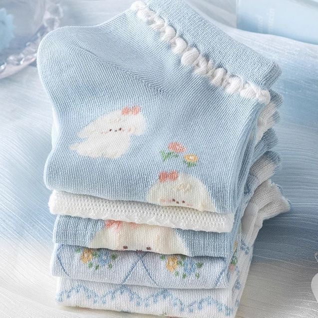 蝶ネクタイソックス女性の夏の薄いパイルソックスイン日本のかわいい耳秋と冬のミッドチューブソックス