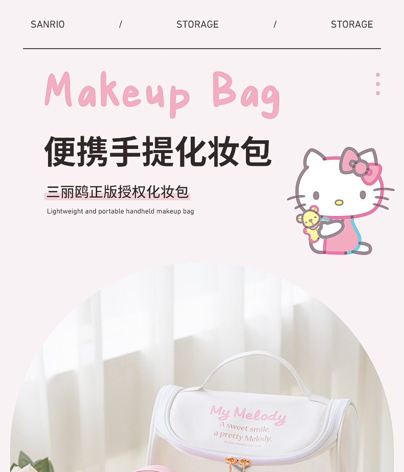 トラベルポータブル正規品サンリオハローキティ手提げ化粧品収納バッグ防水PUフック洗面バッグ