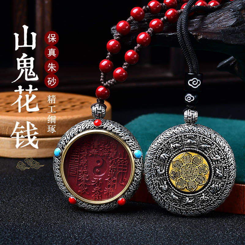 辰砂工場卸売辰砂山 gui 花マネーマウンテン高価なセーターチェーン回転チベットシルバー守護ペンダント低含有量