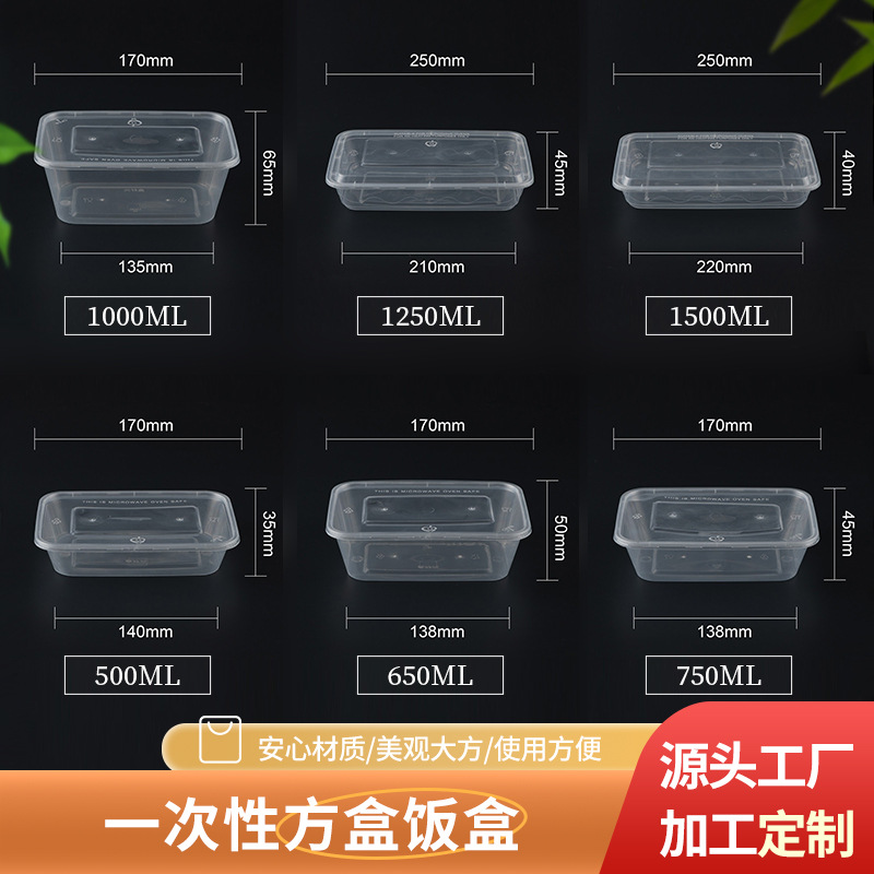 使い捨てランチボックスマルチ仕様透明PP蓋付き正方形ボックス食品グレードホテルテイクアウト使い捨てボックス包装箱