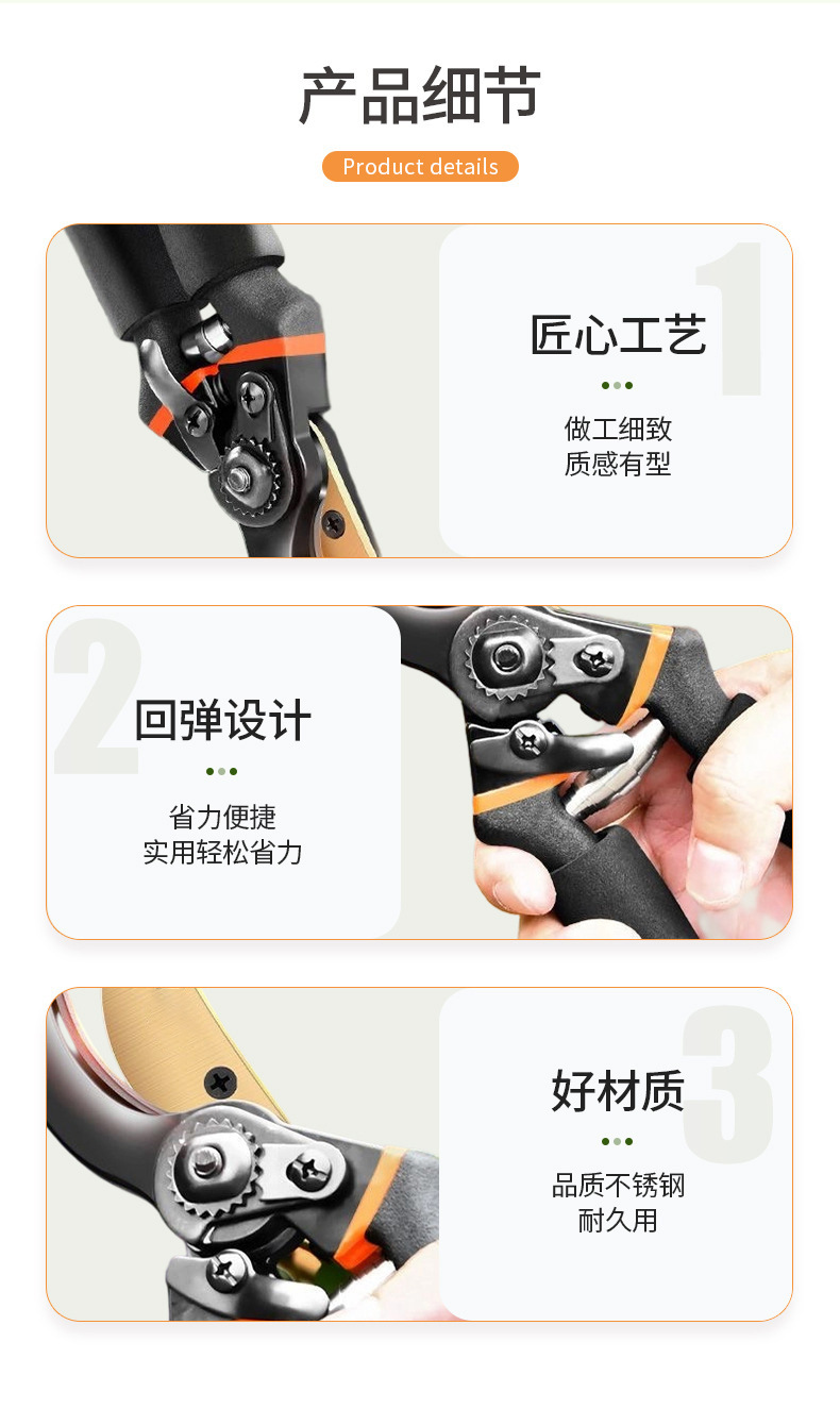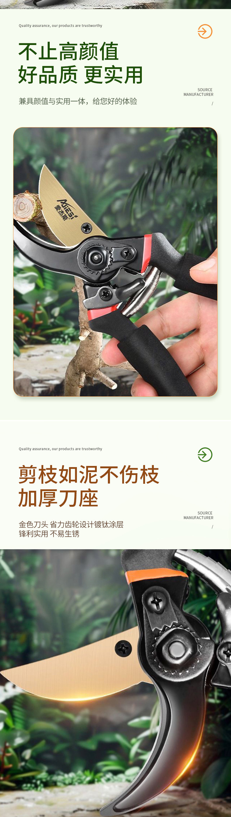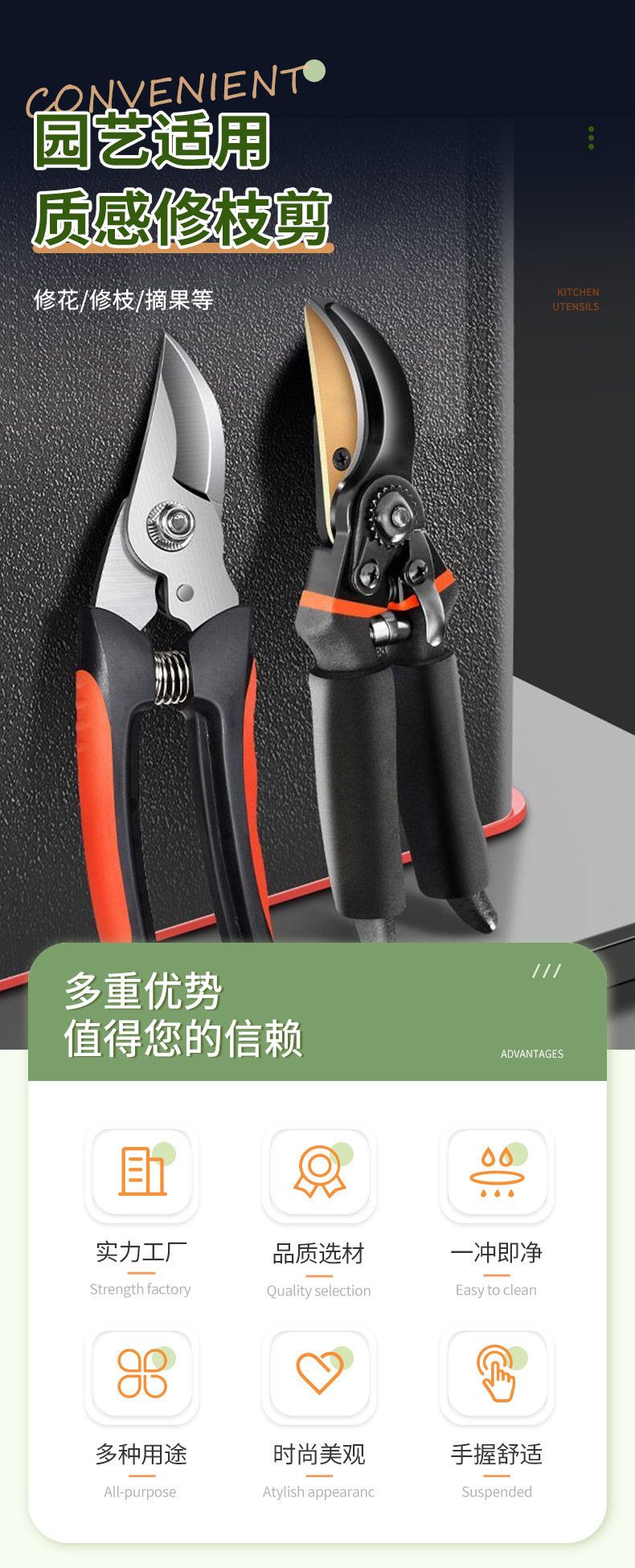 果樹園剪定鋏、多機能強力ステンレス園芸鋏、果樹園果実摘み鋏
