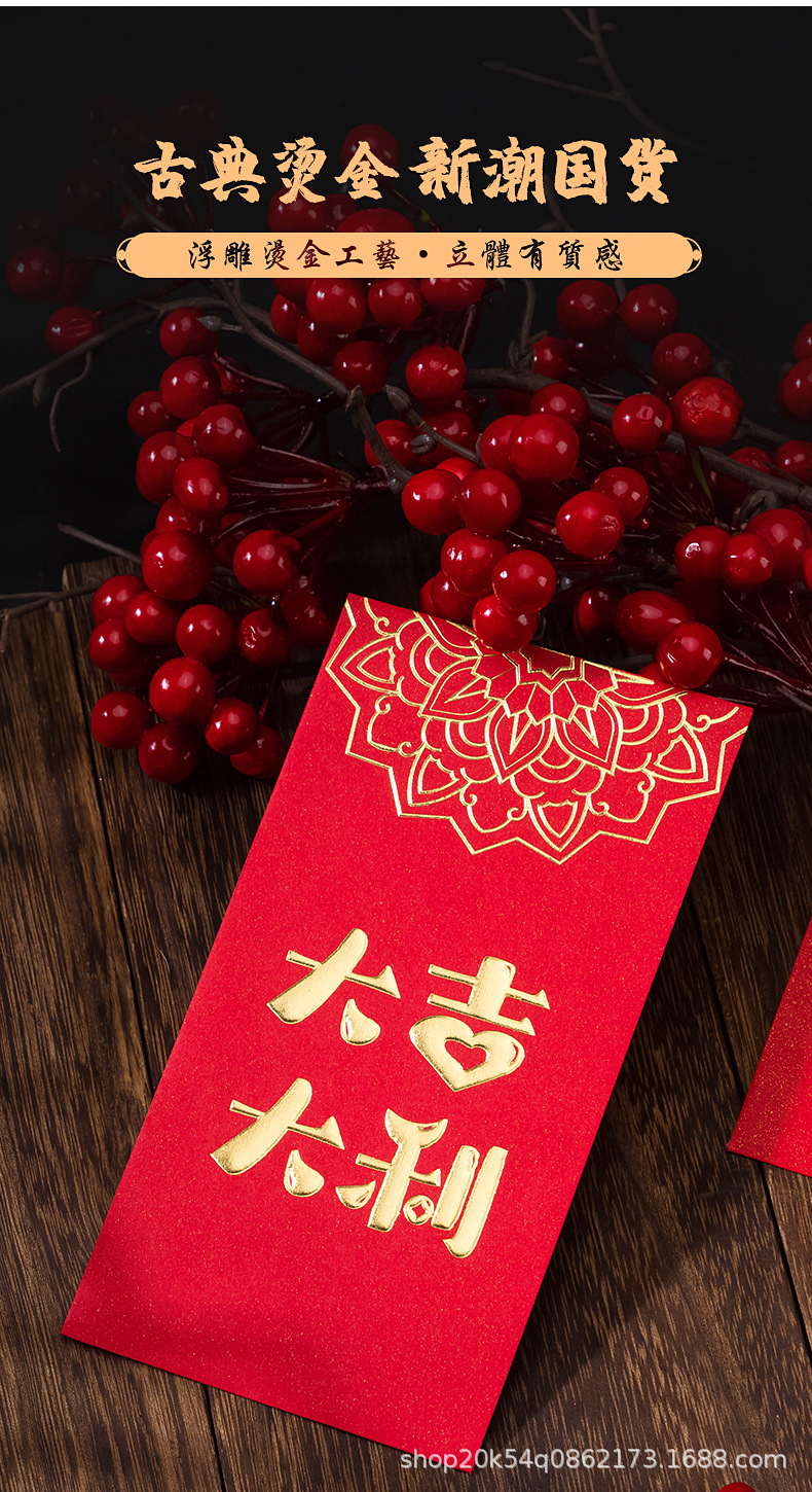 卸売 福字 大吉大利 金箔押し 赤封筒 2026年新作 春節用お年玉袋 新年赤封筒 工場直販