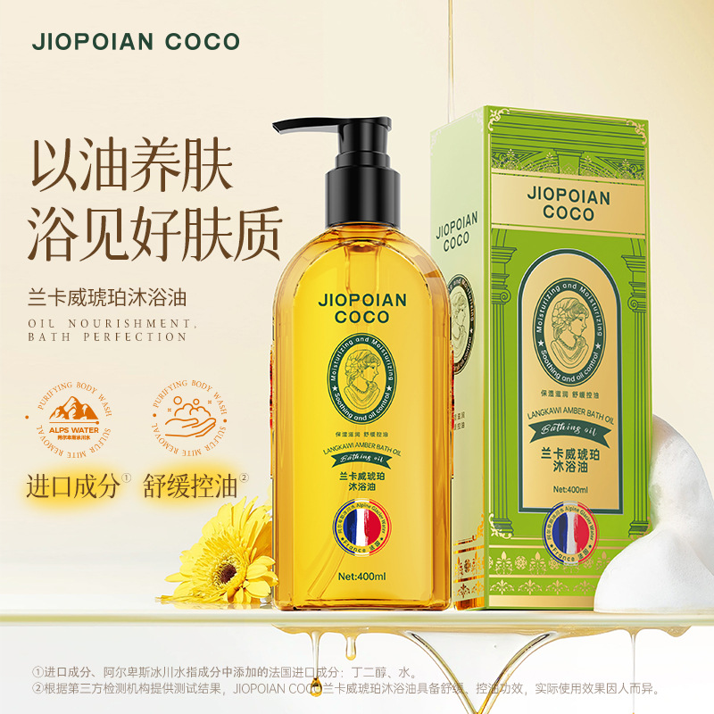 琥珀香氛沐浴油保湿滋润嫩肤清洁润肤秋冬持久留香水沐浴油代发