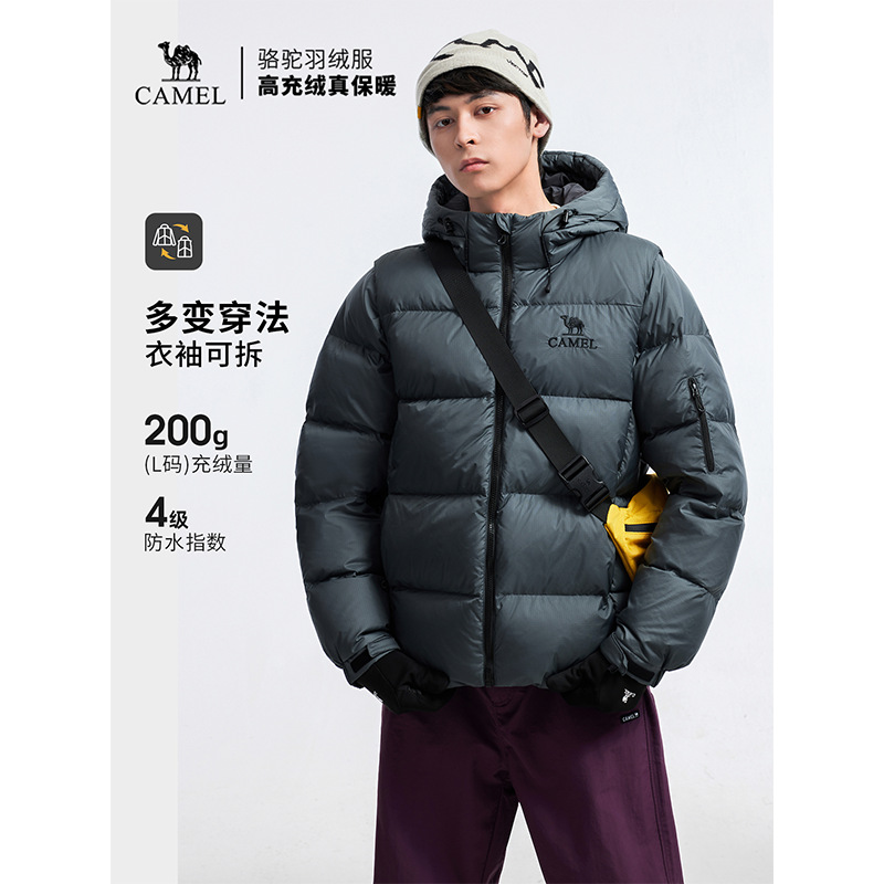 骆驼可拆袖羽绒服男女同款2025年秋冬户外保暖防钻绒防泼水面包服