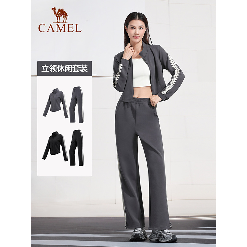 骆驼休闲套装女款春季防风保暖立领两件套运动时尚外套拼接直筒裤