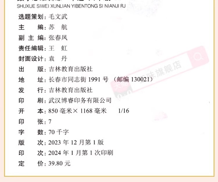 数学思考訓練小学校123456年生同期人教版解題技術思考指導図練習冊書