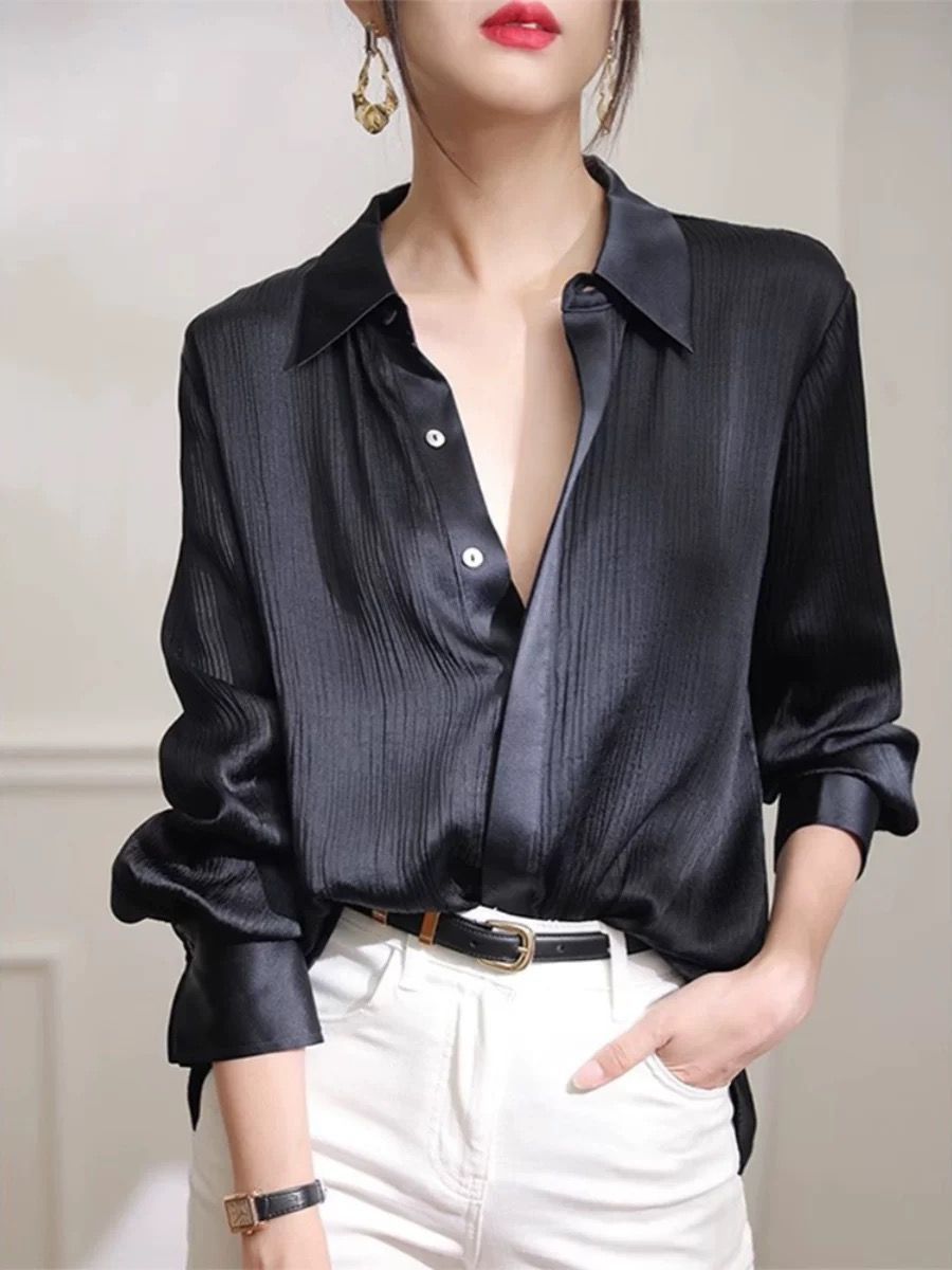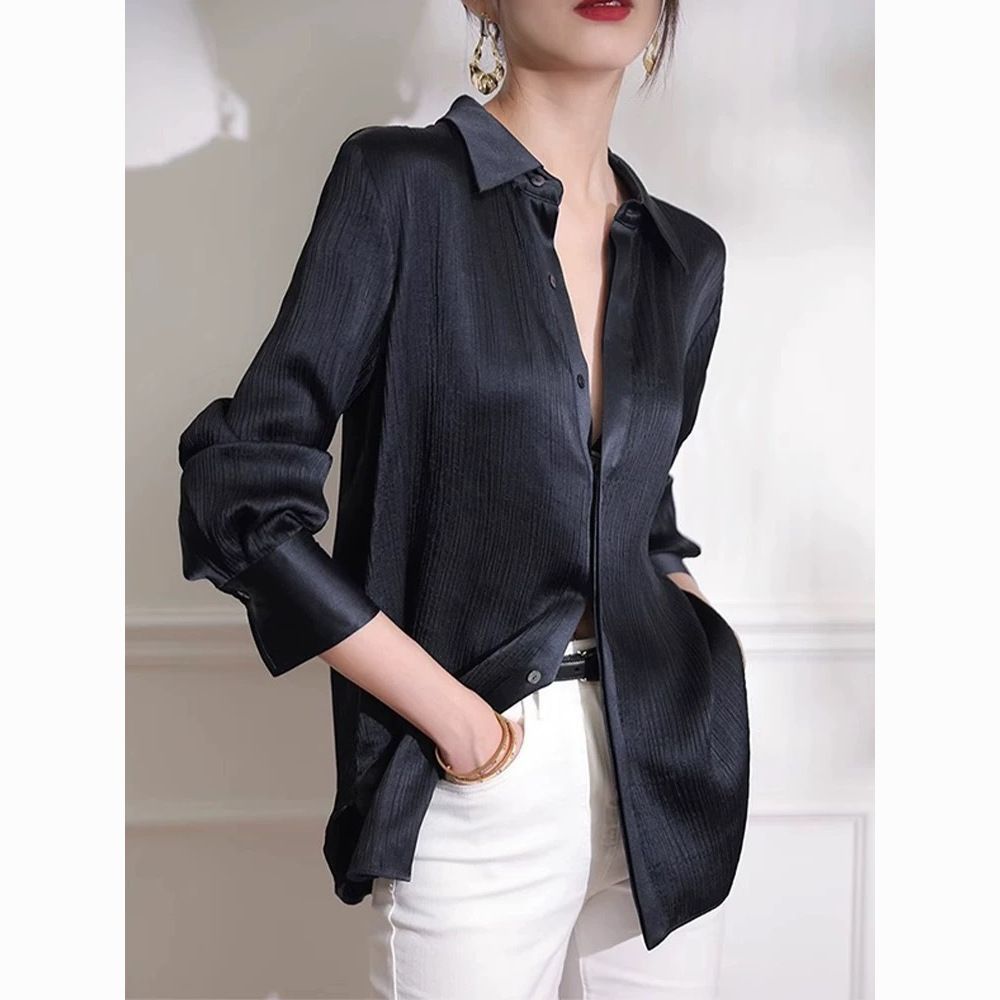 法式2025秋季新款气质高端缎面肌理醋酸高级宽松长袖衬衫衬衣上衣
