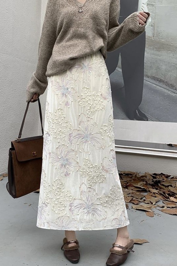 重工刺绣丝绒半身裙秋冬新款国风中长款直筒裙高腰气质a字包臀裙