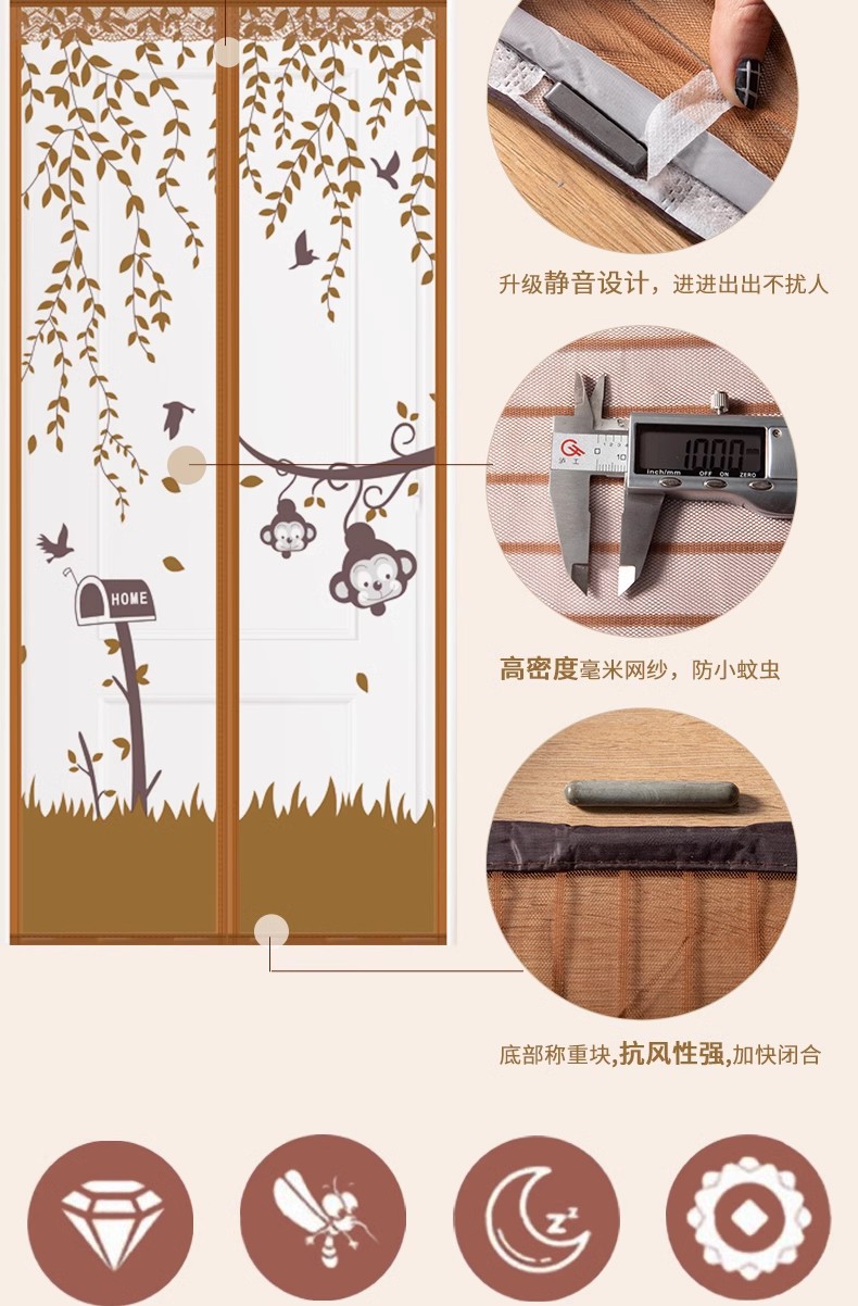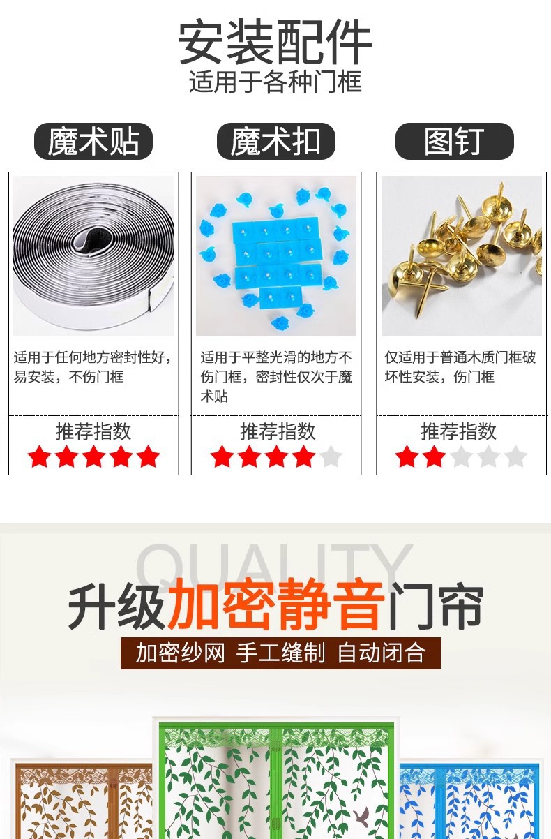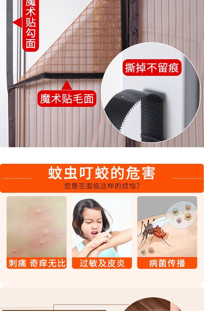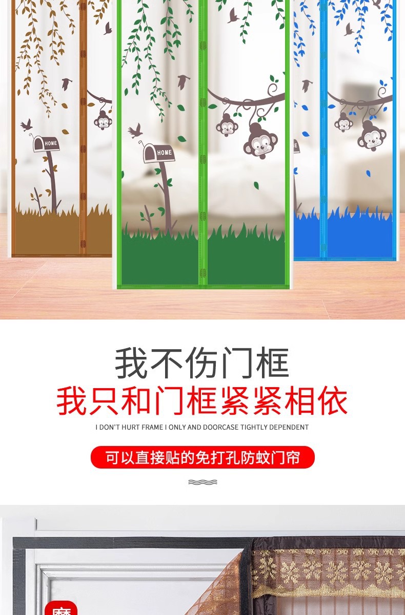 夏用家庭用スクリーンドア蚊帳、ハエよけ、蚊よけドアカーテンパーティション、パンチングなし、ベルクロマグネット、自吸式暗号化スクリーンウィンドウ