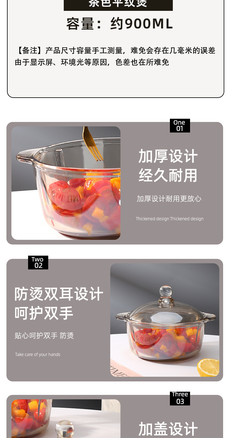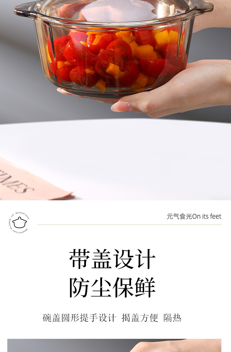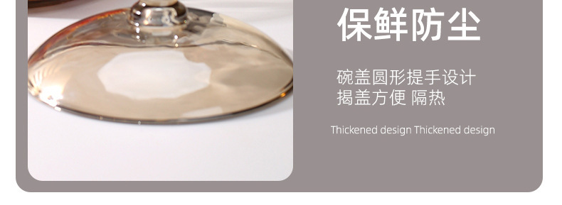 风茶色玻璃双耳带盖泡面碗家用大号汤碗微波炉跨境工厂外贸批发