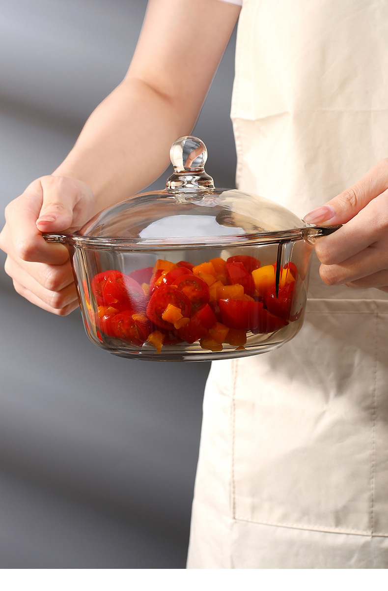 高見えインスタント ヌードル ガラス ボウル ハンドル付き火傷防止学生寮蓋付き大容量透明インスタント ヌードル ボウル卸売