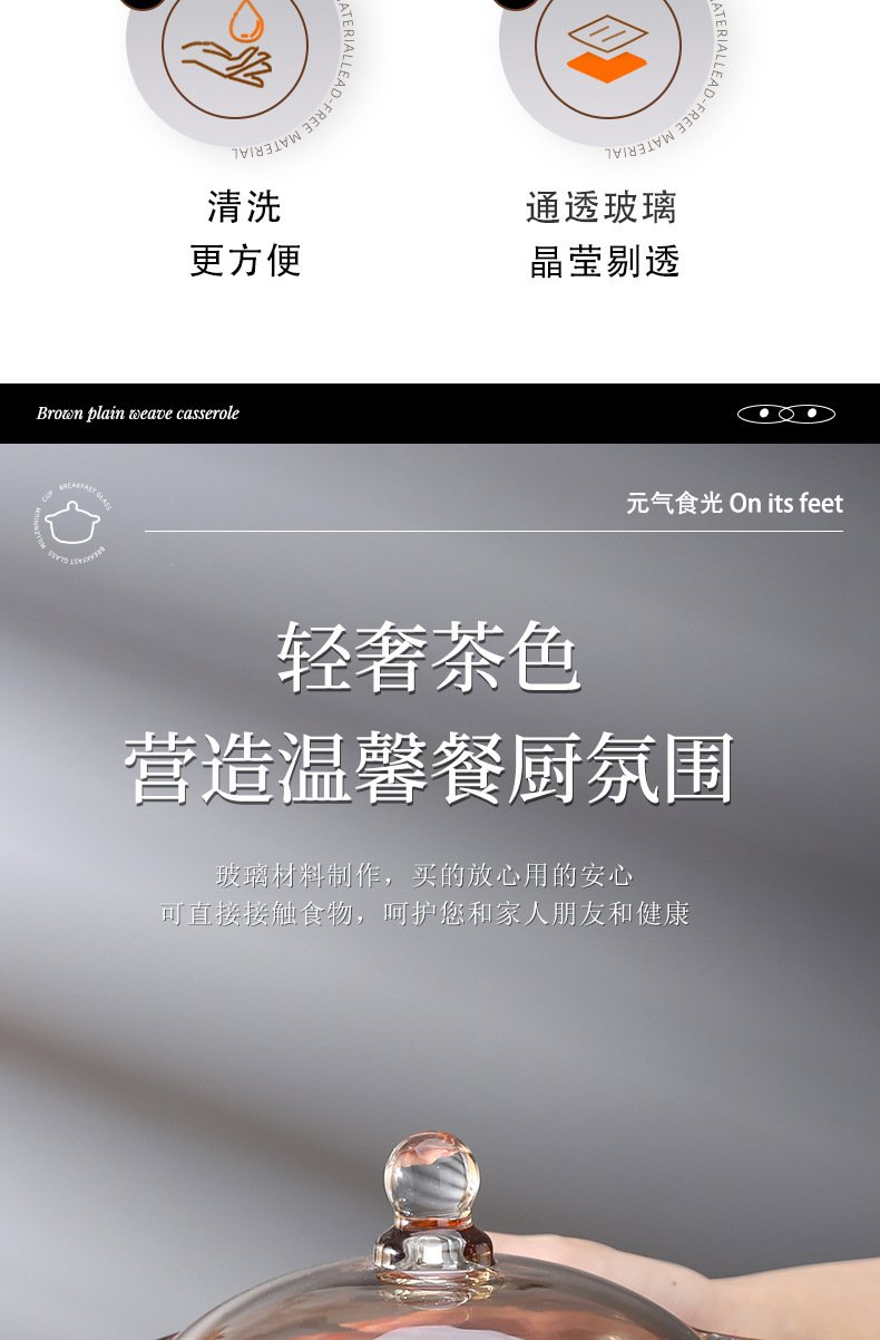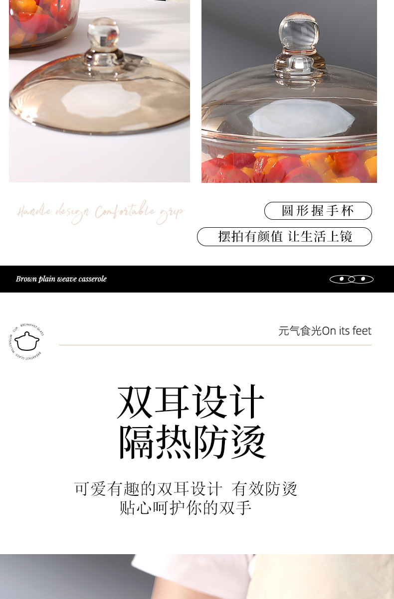 茶色のガラスボウル、蓋付き双耳ボウル、インスタントラーメンボウル、スープボウル、ライスボウル、サラダフルーツボウル、火傷防止家庭用ガラスボウル