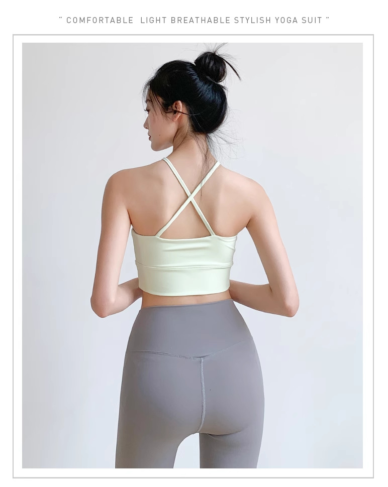 ファッショナブルでセクシーなホルターネックサスペンダースポーツヨガベスト通気性と速乾性のアウターヨガトップ