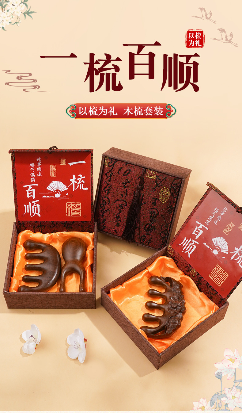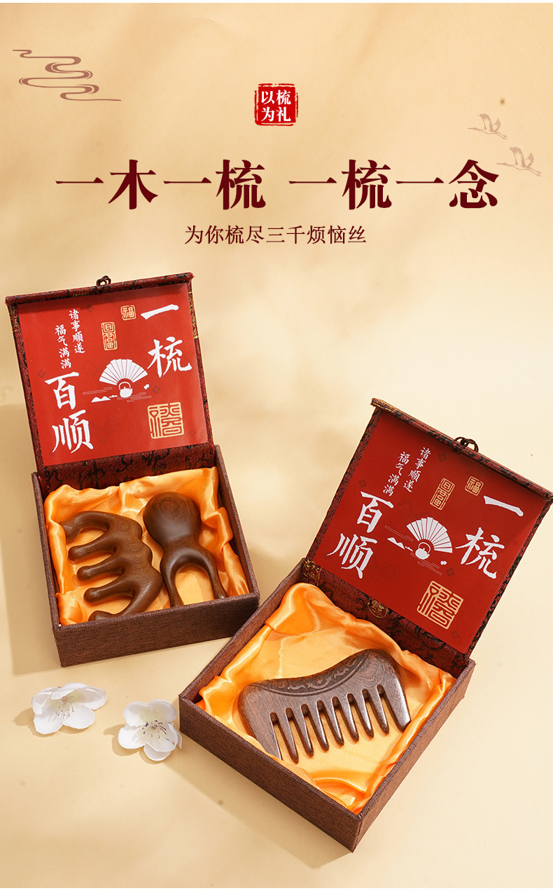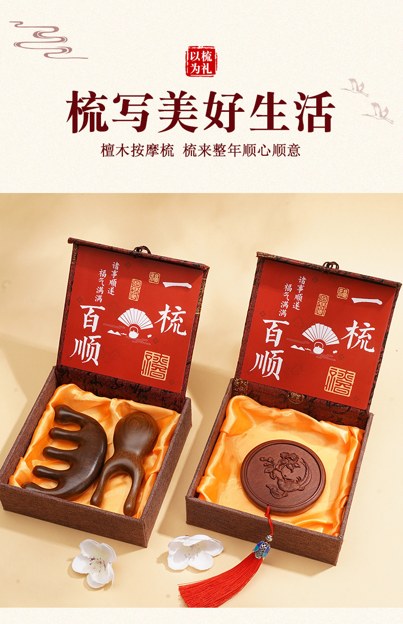 白檀中国風新年パーティー記念品頭経絡マッサージコームギフトボックス 38 セクションギフト