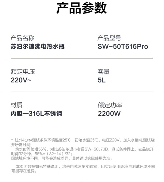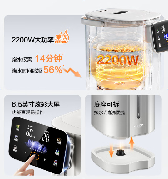 蘇泊爾電気湯沸かし器家庭用取り外し可能316Lステンレス内胆知能電気ケトルSW-50T302Pro