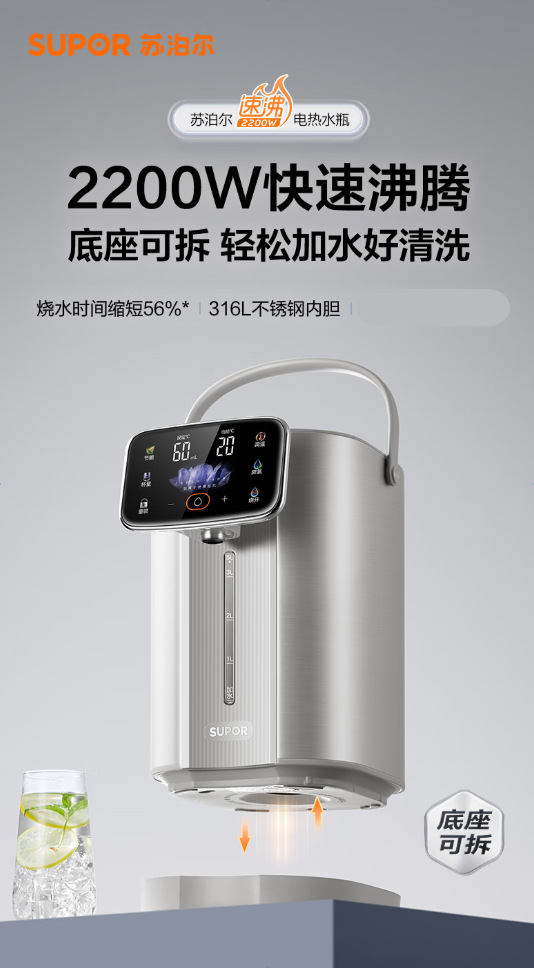 苏泊尔电热水瓶家用316L不锈钢双层烧水壶多段保温恒温电水壶烧水