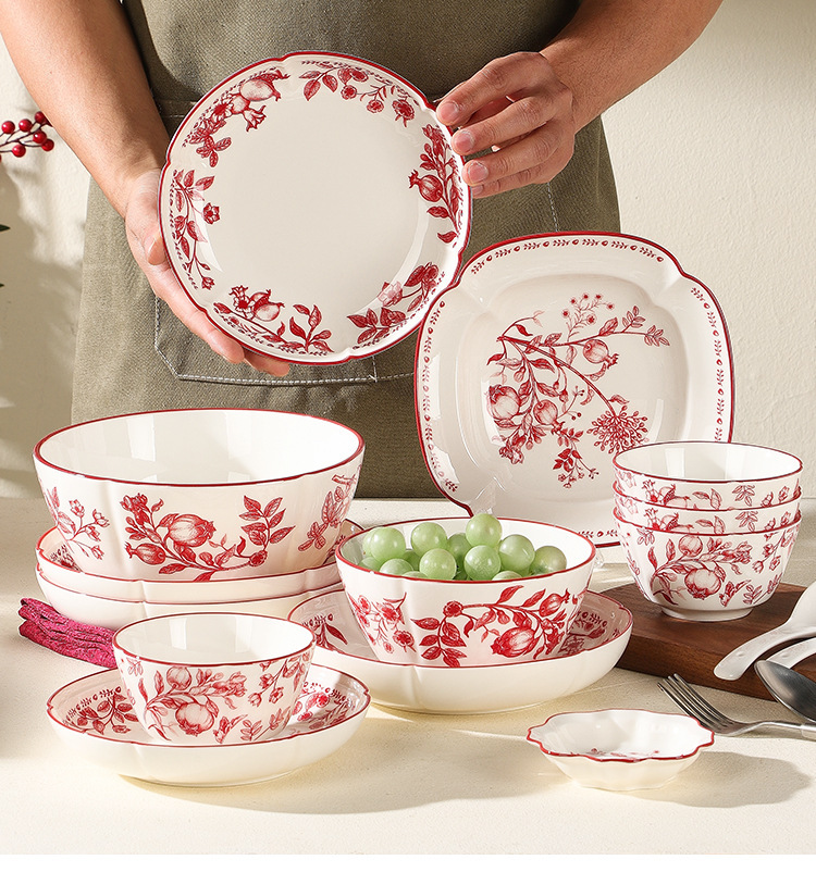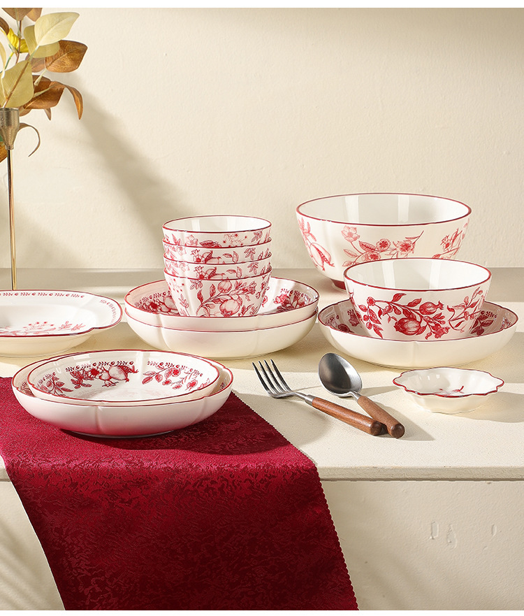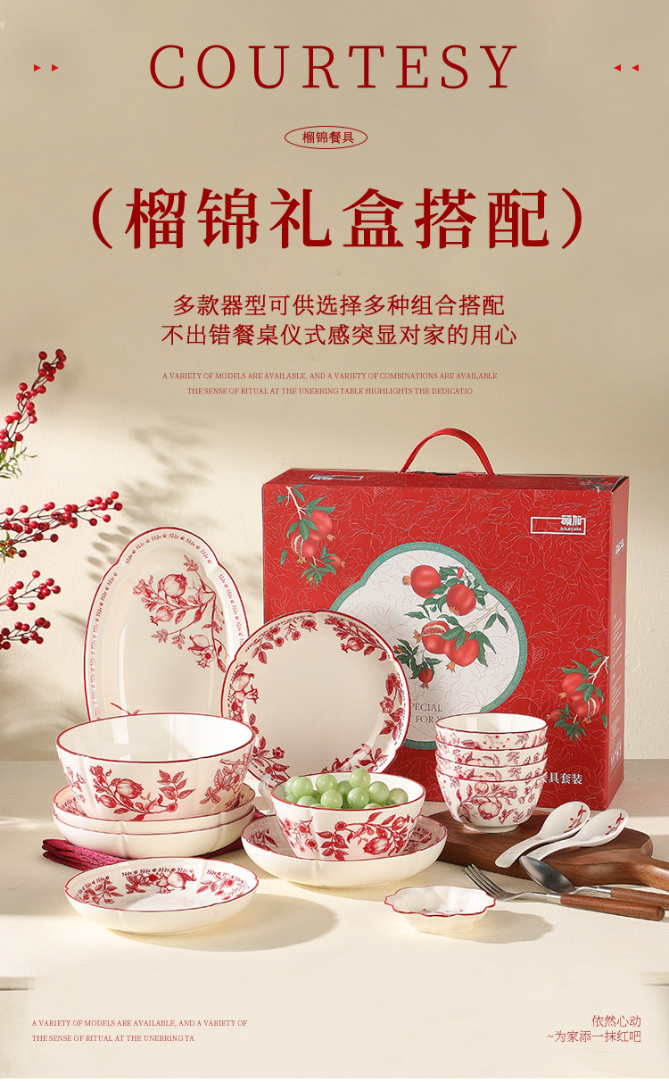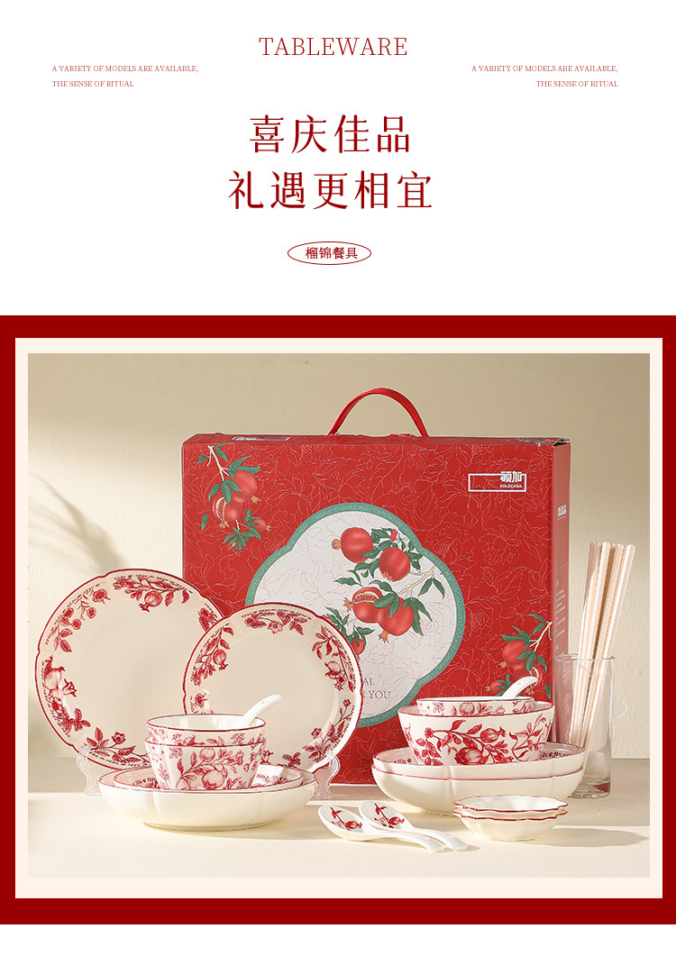 中国風のプレートと食器セット、家庭用プレート、新築祝いの花嫁食器ギフトボックス、見栄えの良い新しいプレート、ボウルとスプーン