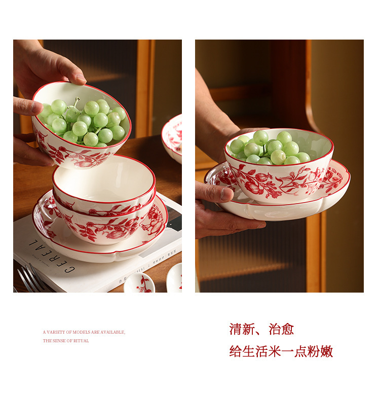 クリームins风セラミック両耳碗エアフライヤー焼き碗电子レンジオーブン専用碗サラダ碗蒸し碗
