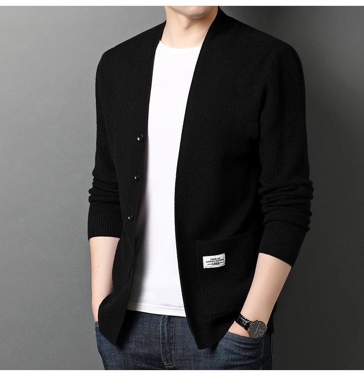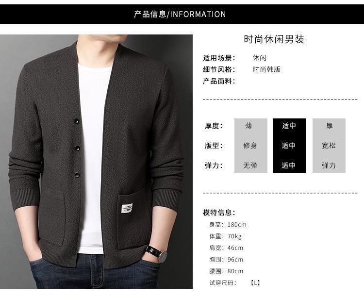 Yingao純色ウールカーディガンセーター秋冬男性新型青年カジュアルボタンニットコート卸売り