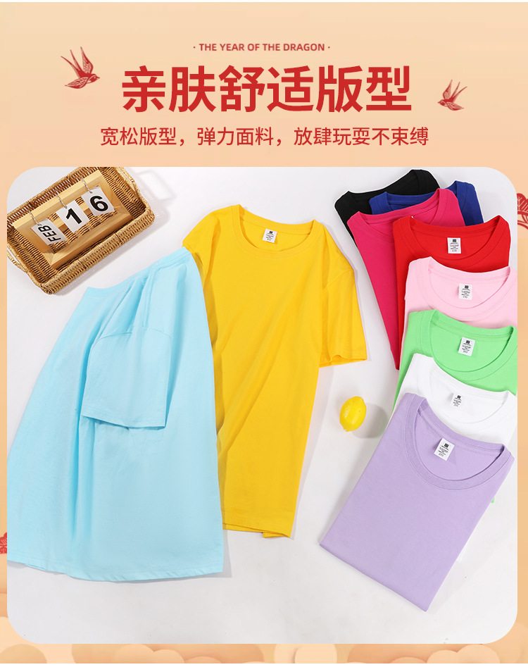 卸売り180グラム精櫛綿児童肩半袖tシャツ班服団服親子来図印字ロゴデザイン