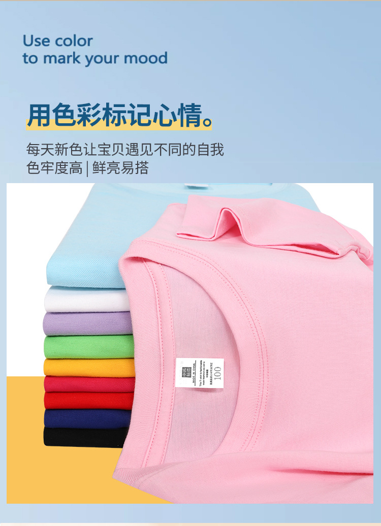メーカー卸売り15色児童純色半袖tシャツカジュアル丸襟童装上着班服団体服カスタム白t