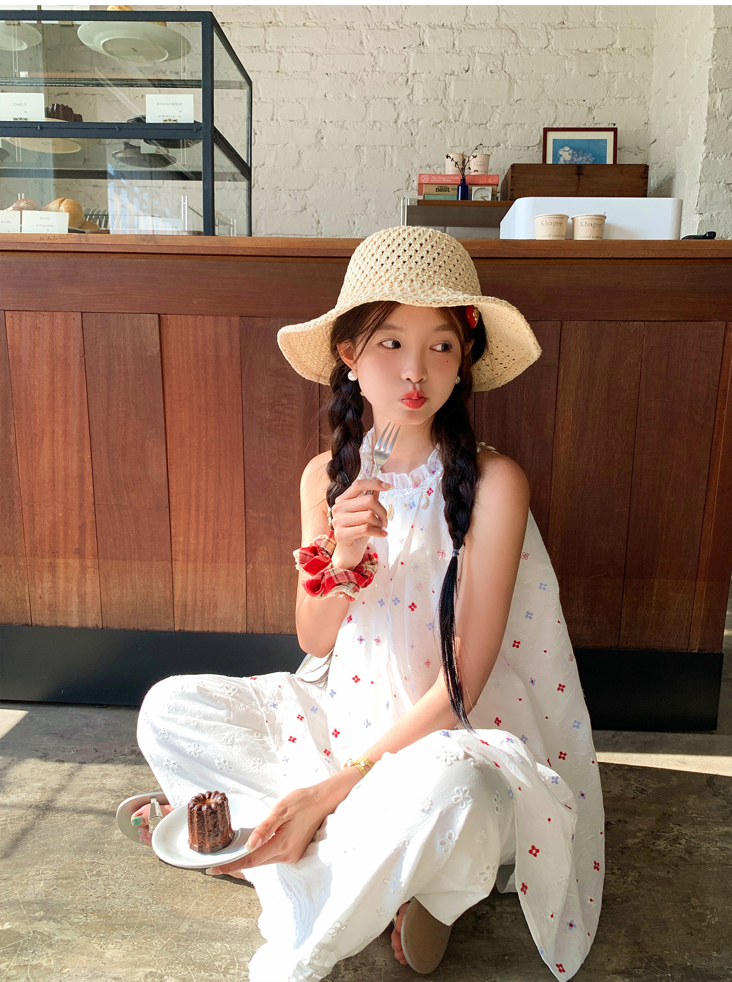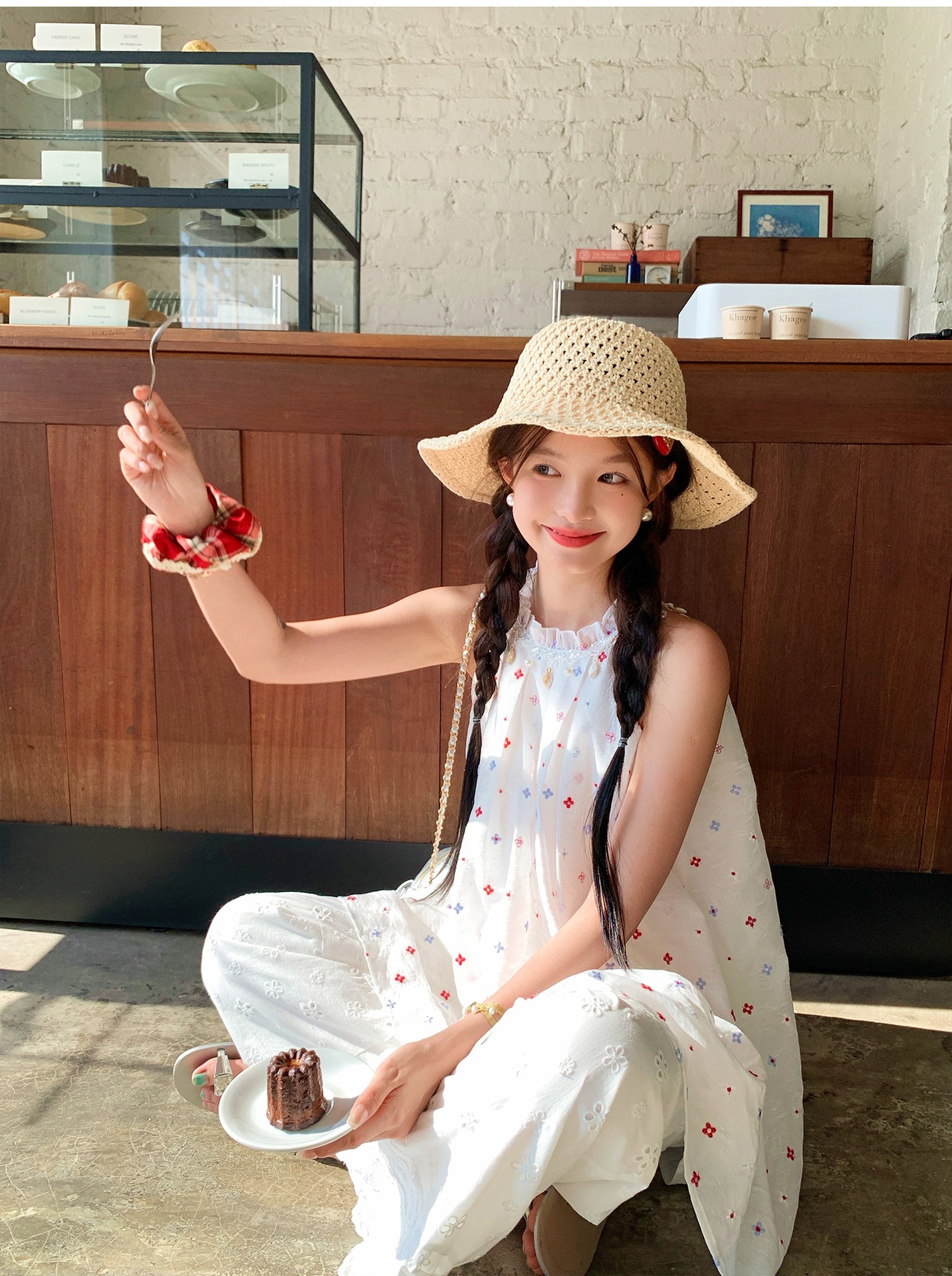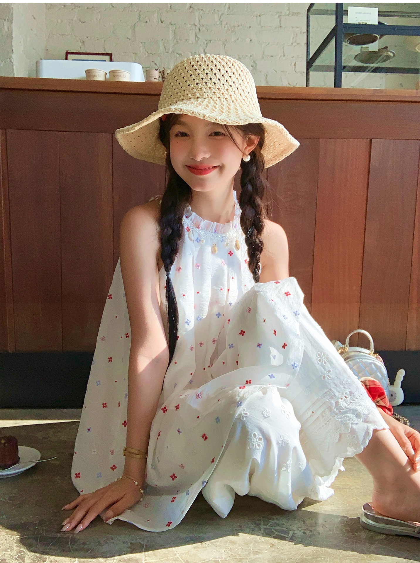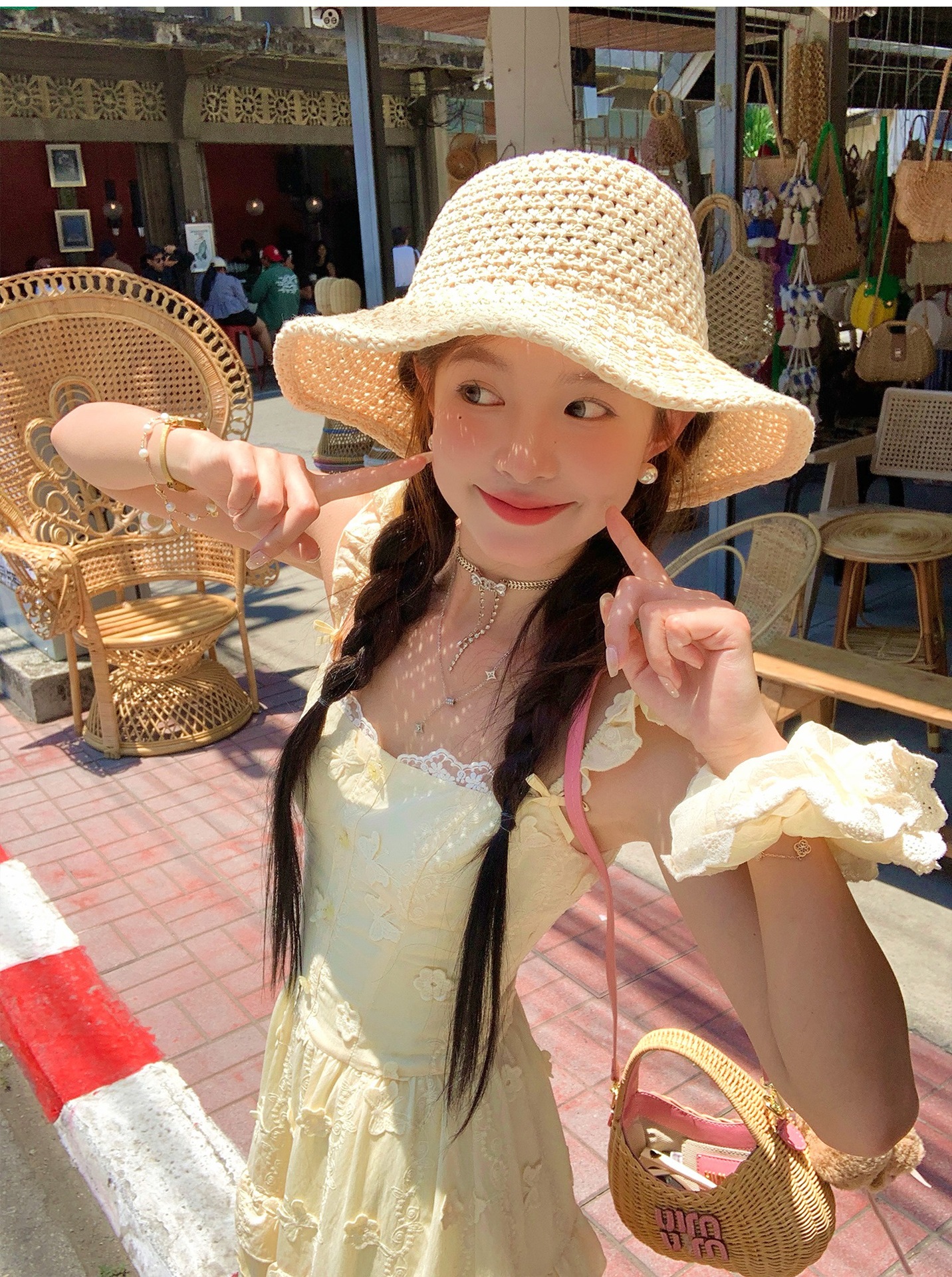 『拉菲草』ins手編み平頂麦わら帽子子供2025新作夏日焼け止め透かし彫り優雅礼帽