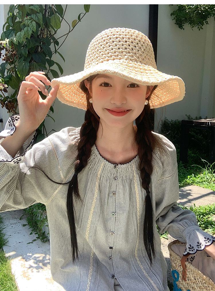 「高品質バージョン」ヘボン風麦わら帽子女性用 2025 新しい夏の日焼け止め漁師帽子盆地帽子シルクハット