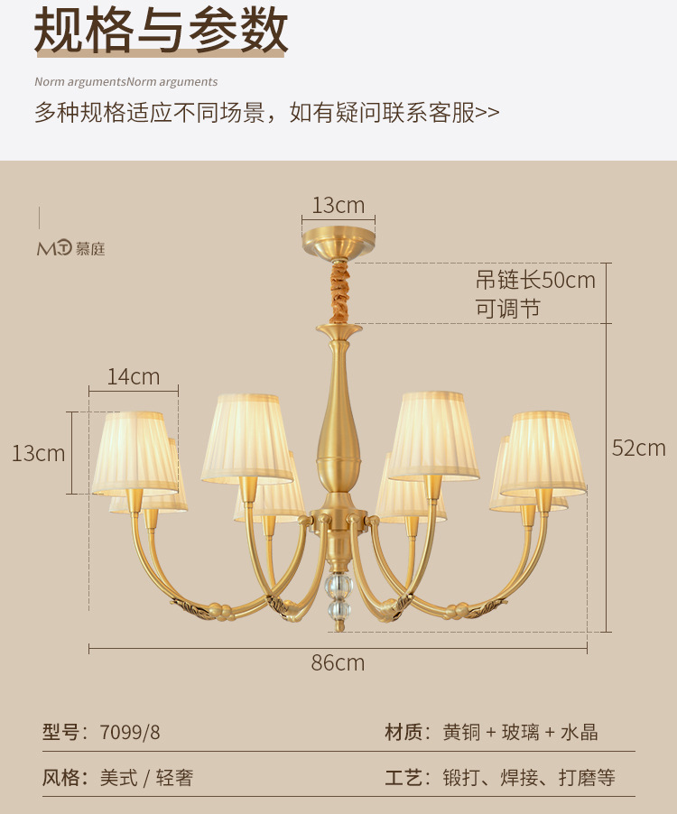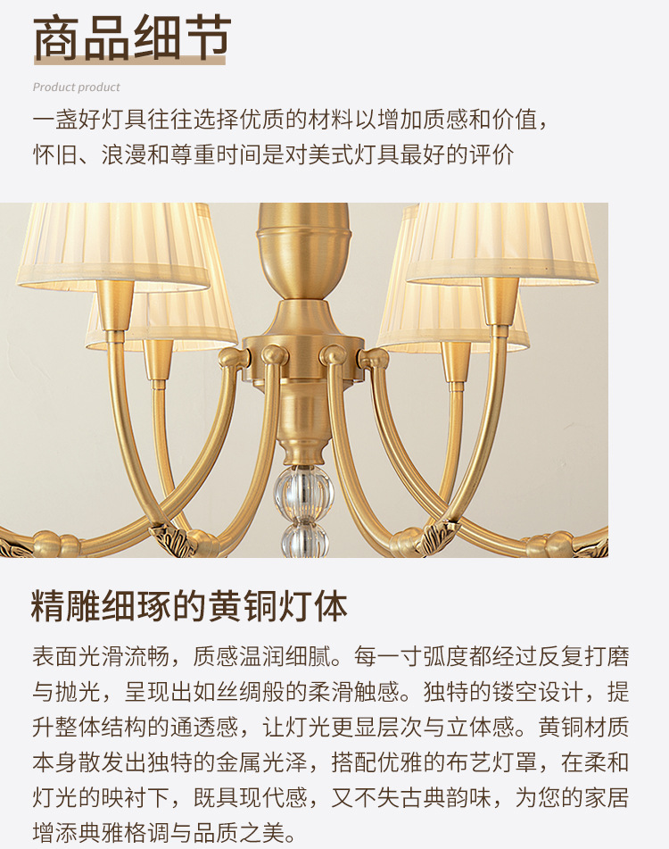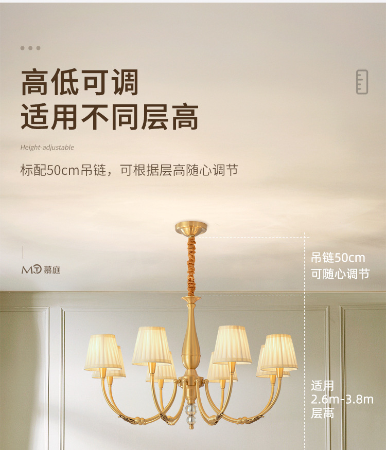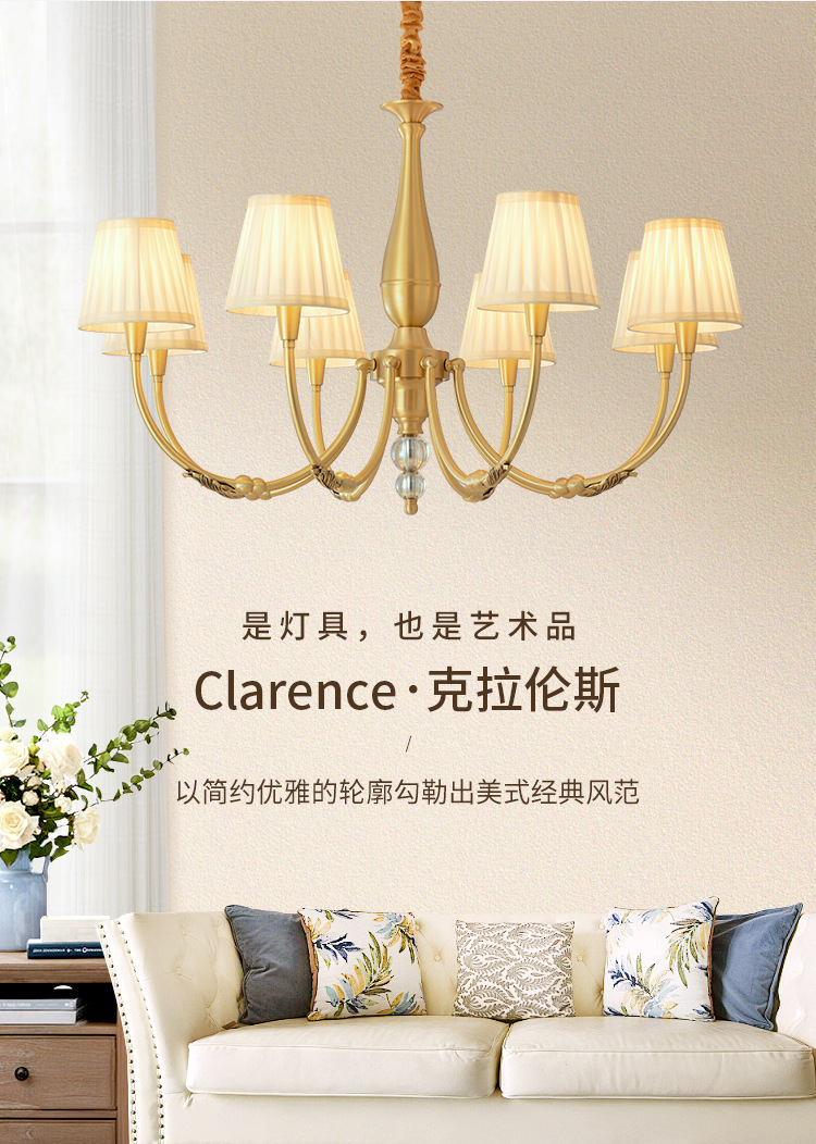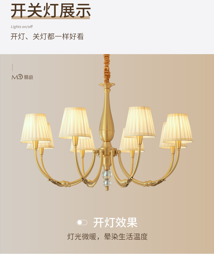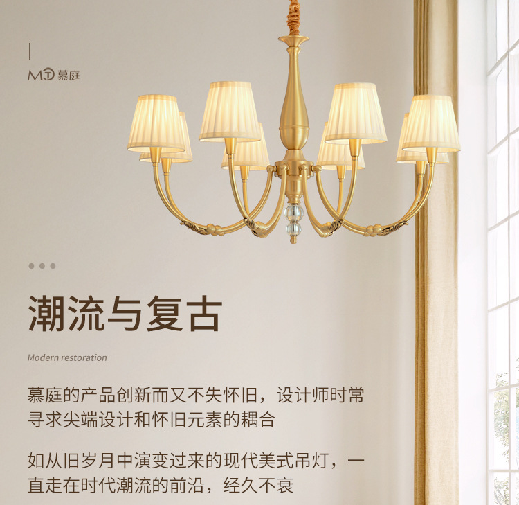 アメリカンオール銅シャンデリアリビングルームライトメインライトシンプルモダンレトロ中世クリームスタイルレストランベッドルームライト66650