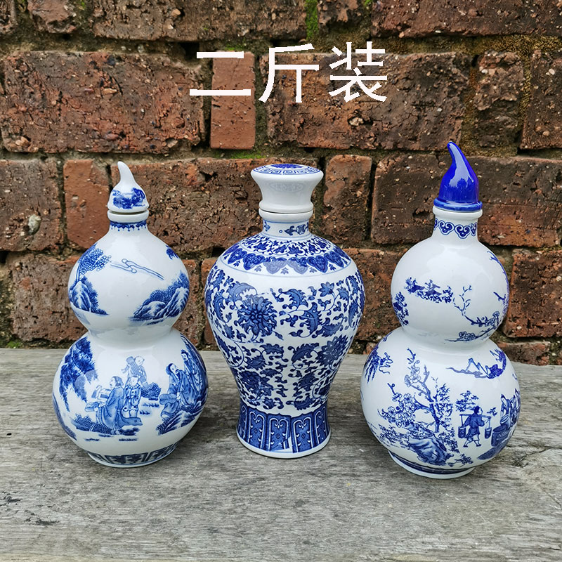 卸売 0.5kg パックセラミックワインボトル青と白のワイン壺アンティークワインボトル白ワイン空ボトル 500ml 景徳鎮