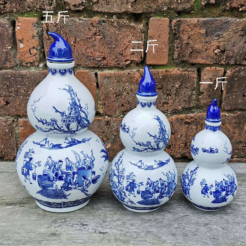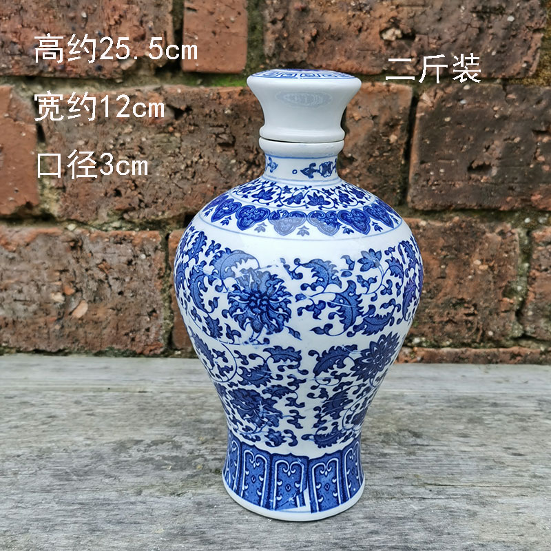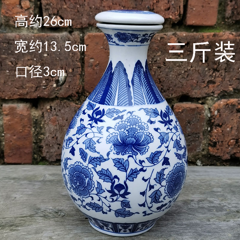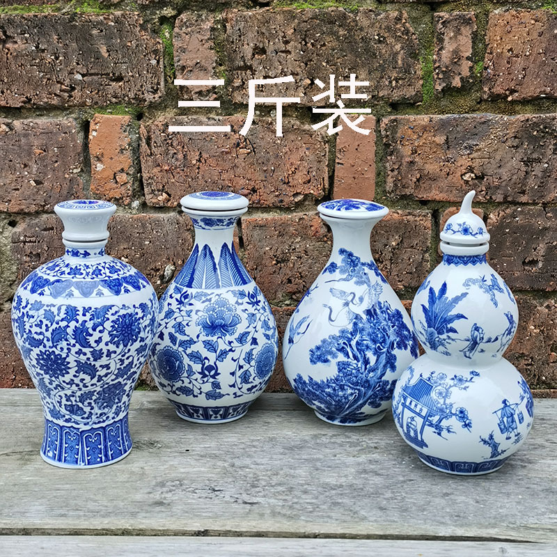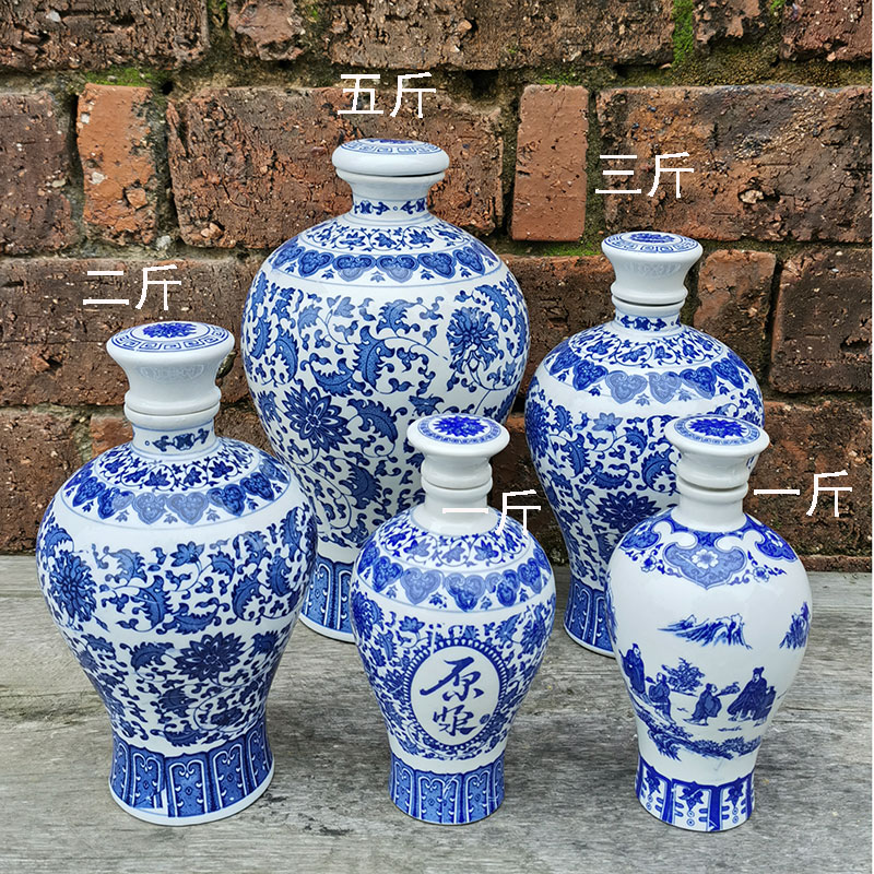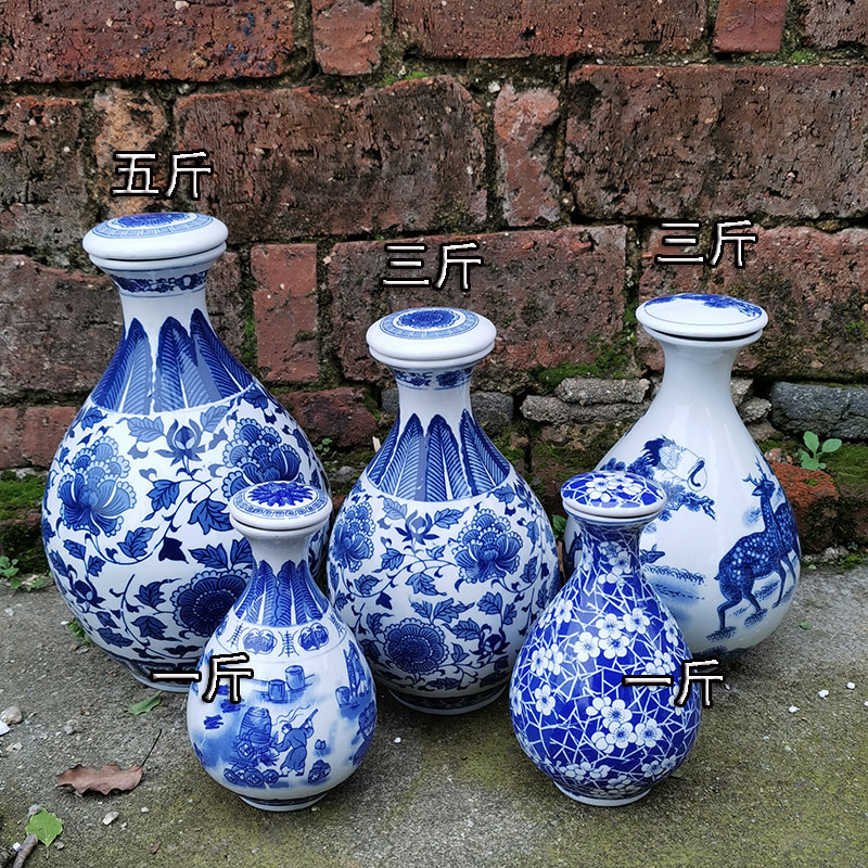 古典的で実用的な景徳鎮青と白のセラミック密封された空のワインボトル家庭用ワインボトル白ワインボトル 1 2 斤 1.5kg パック 5