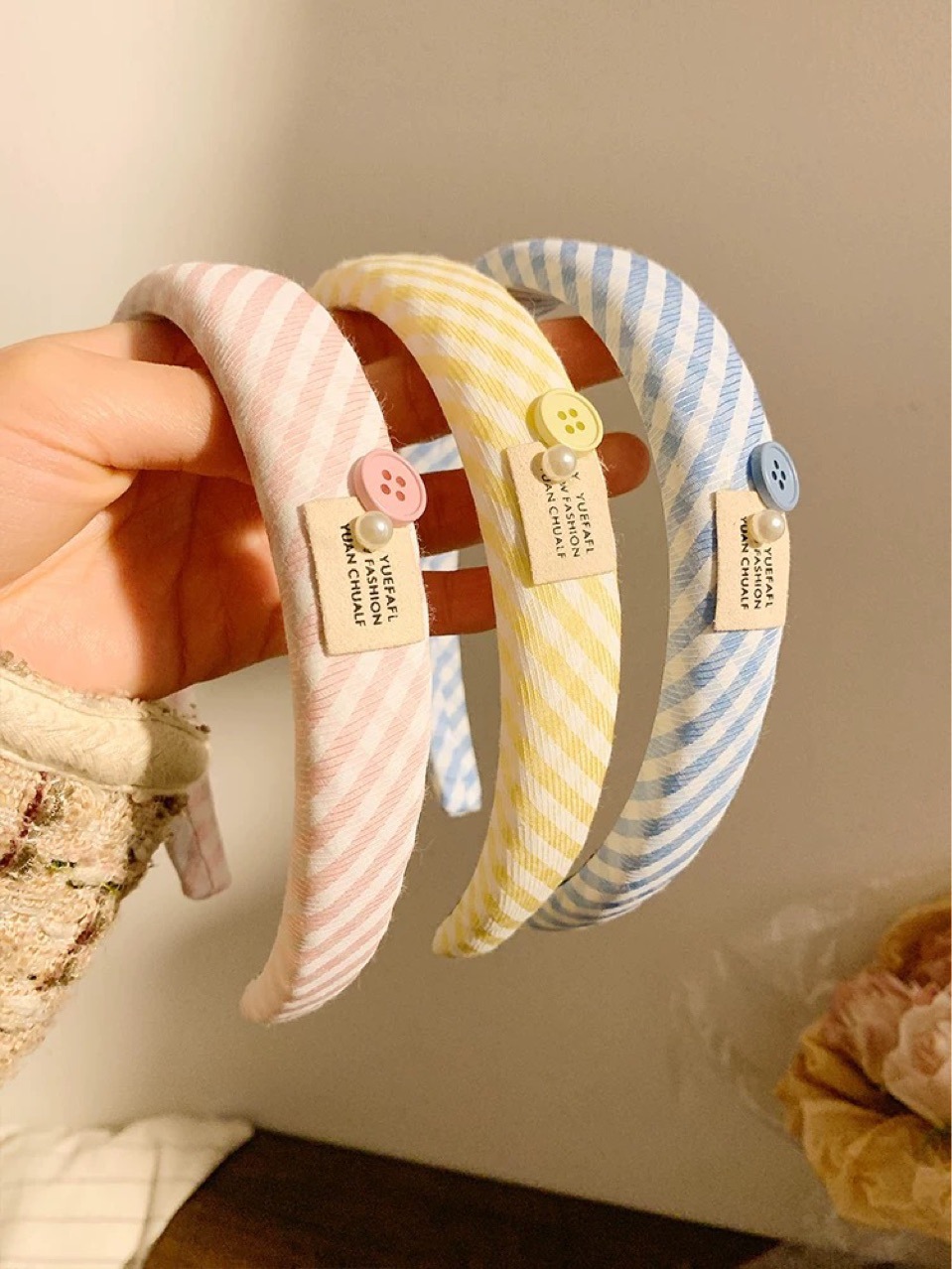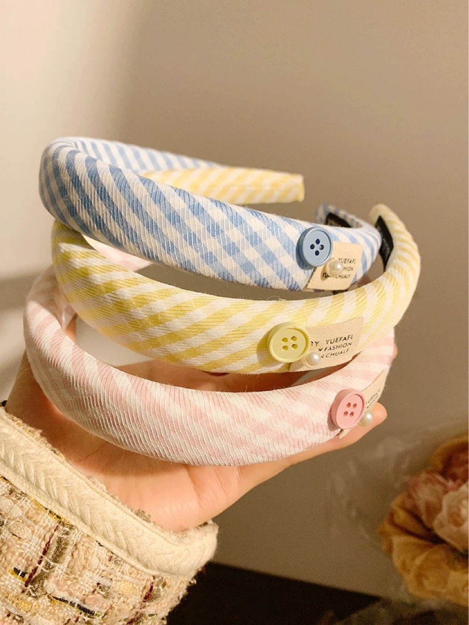 小さくて新鮮でかわいいピンクのボタンストライプヘッドバンド、女性が毎日洗顔して着用できるヘアアクセサリー、ヘアプレスヘッドバンド、春の新スタイル