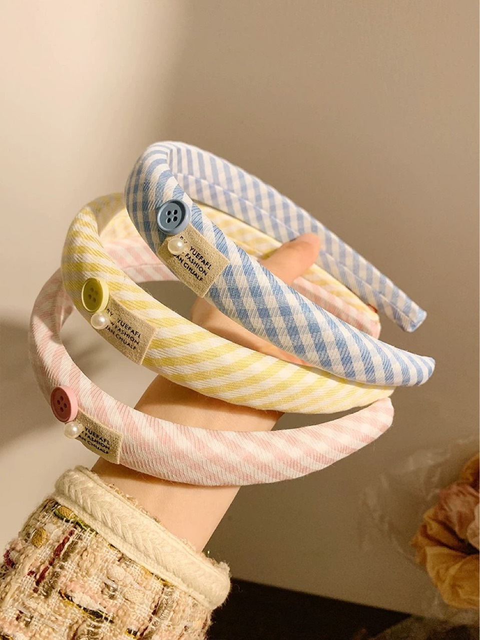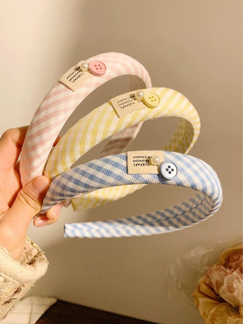 4537 フレッシュチェック柄ピンクのヘアバンド,4538 フレッシュチェック柄ブルーヘアバンド,4500 フレッシュチェック柄イエローヘッドバンド