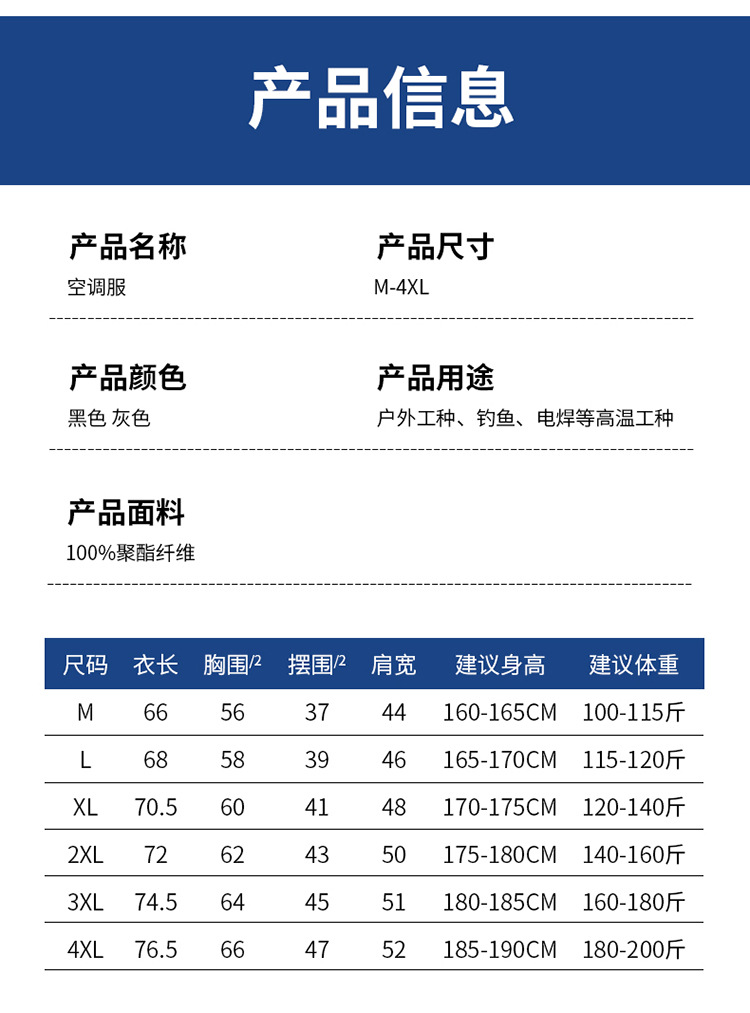 夏季空调服防暑降温带风扇的衣服充电制冷男女工作服防水防紫外服